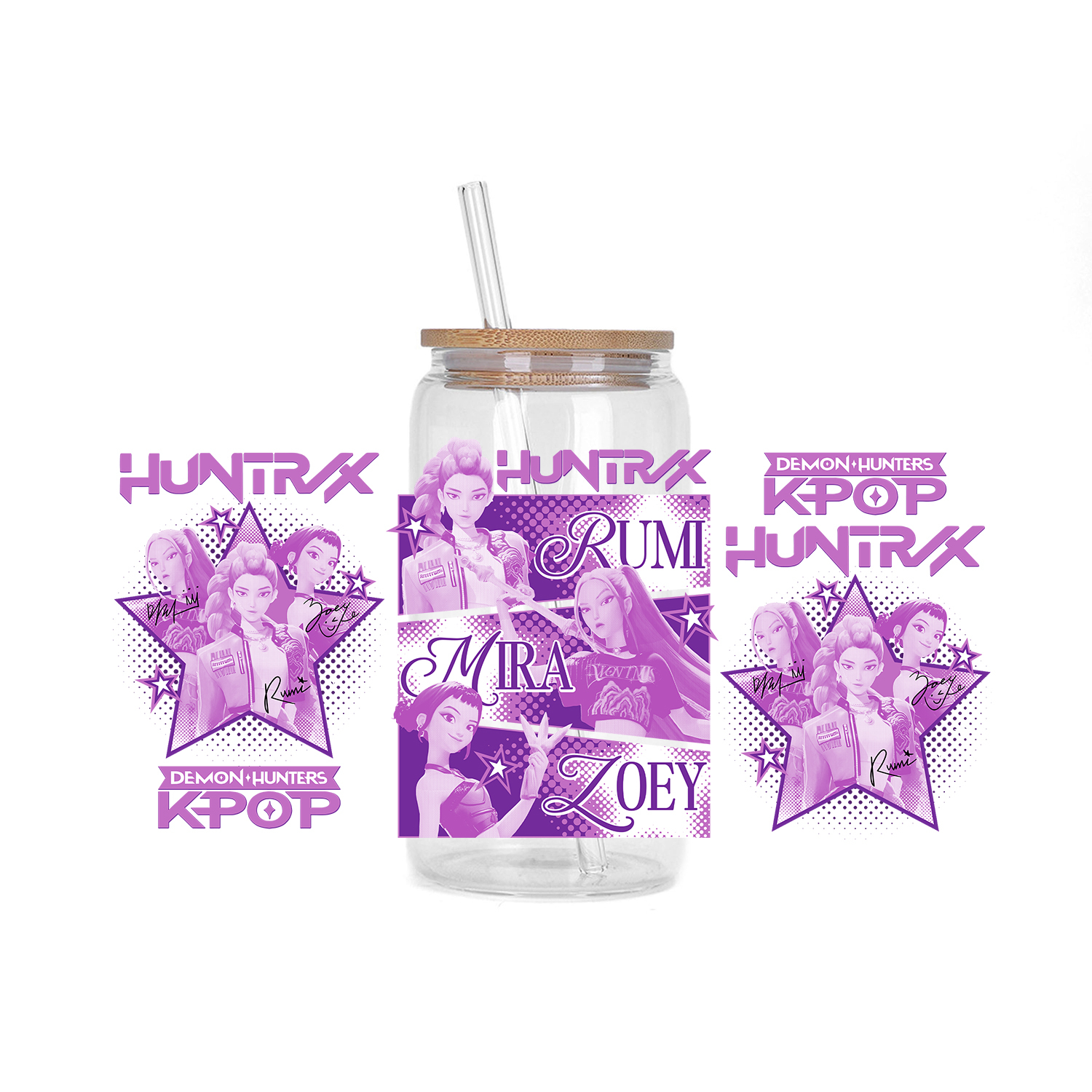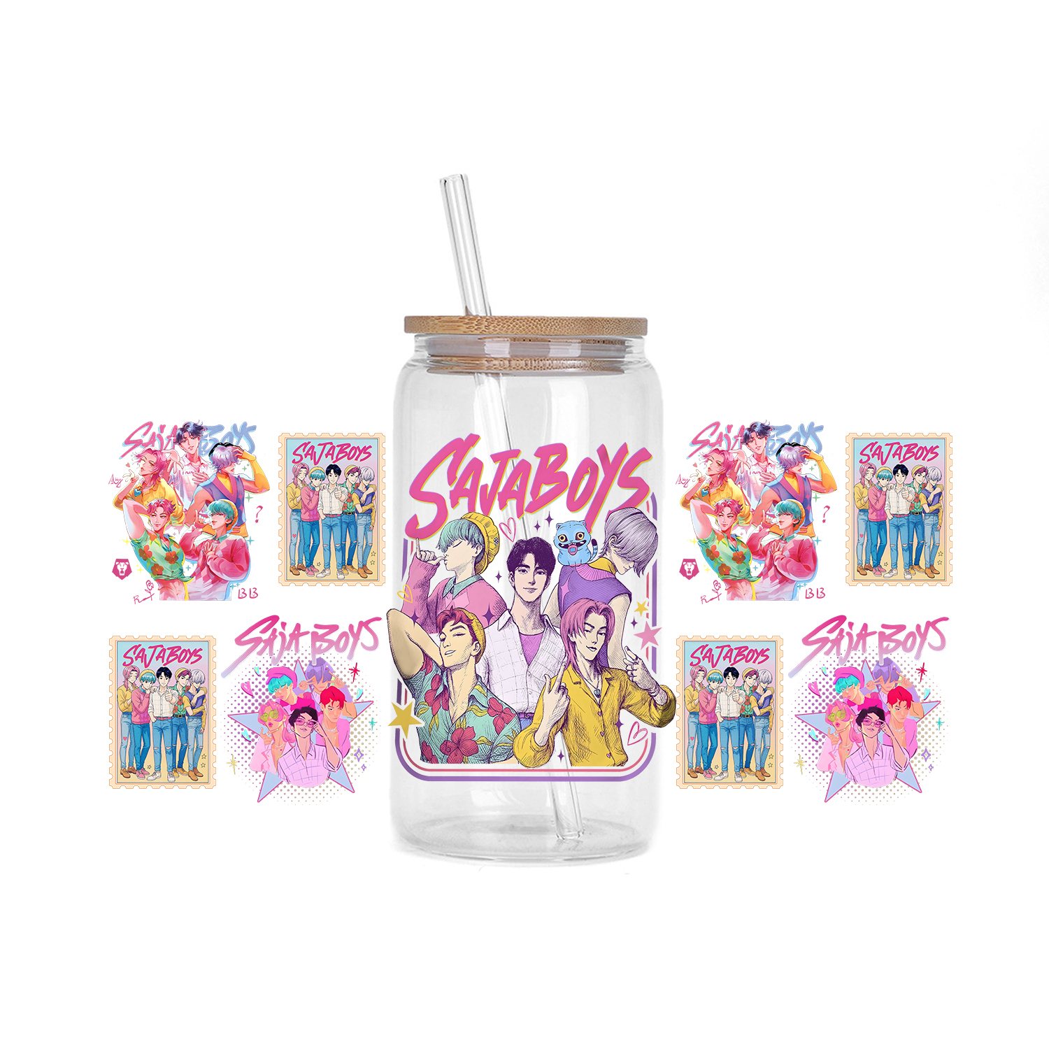 Choose from 30 unique Kpop boy band designs, each with a demon-inspired hunter girl anime theme, to personalize your 16oz cup.