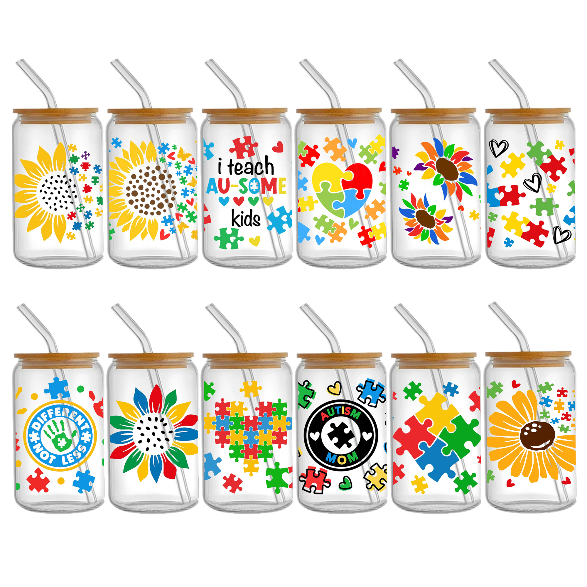 UV DTF adhesive cup wrap designed for a 16oz Glass Cup. (Cup not included.)