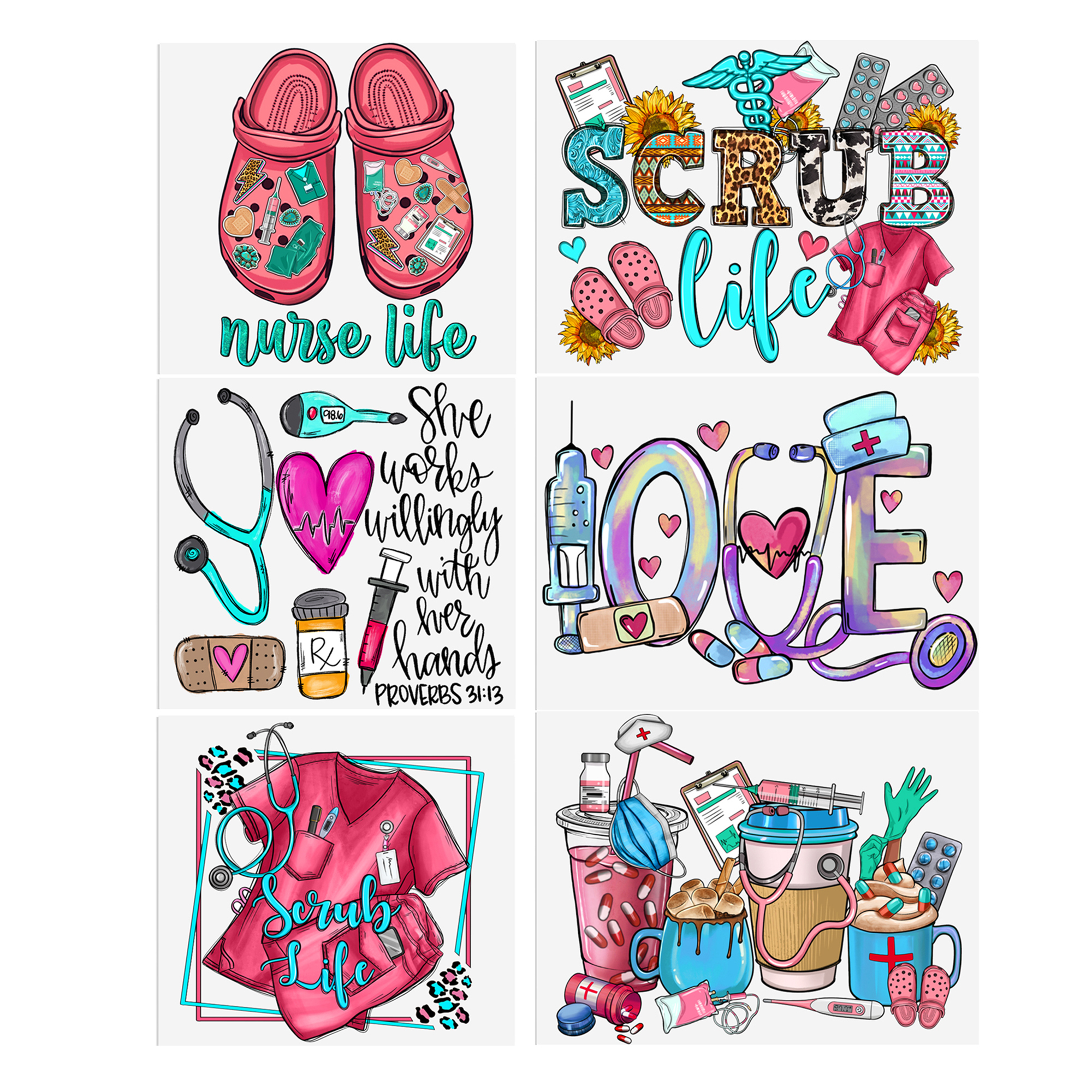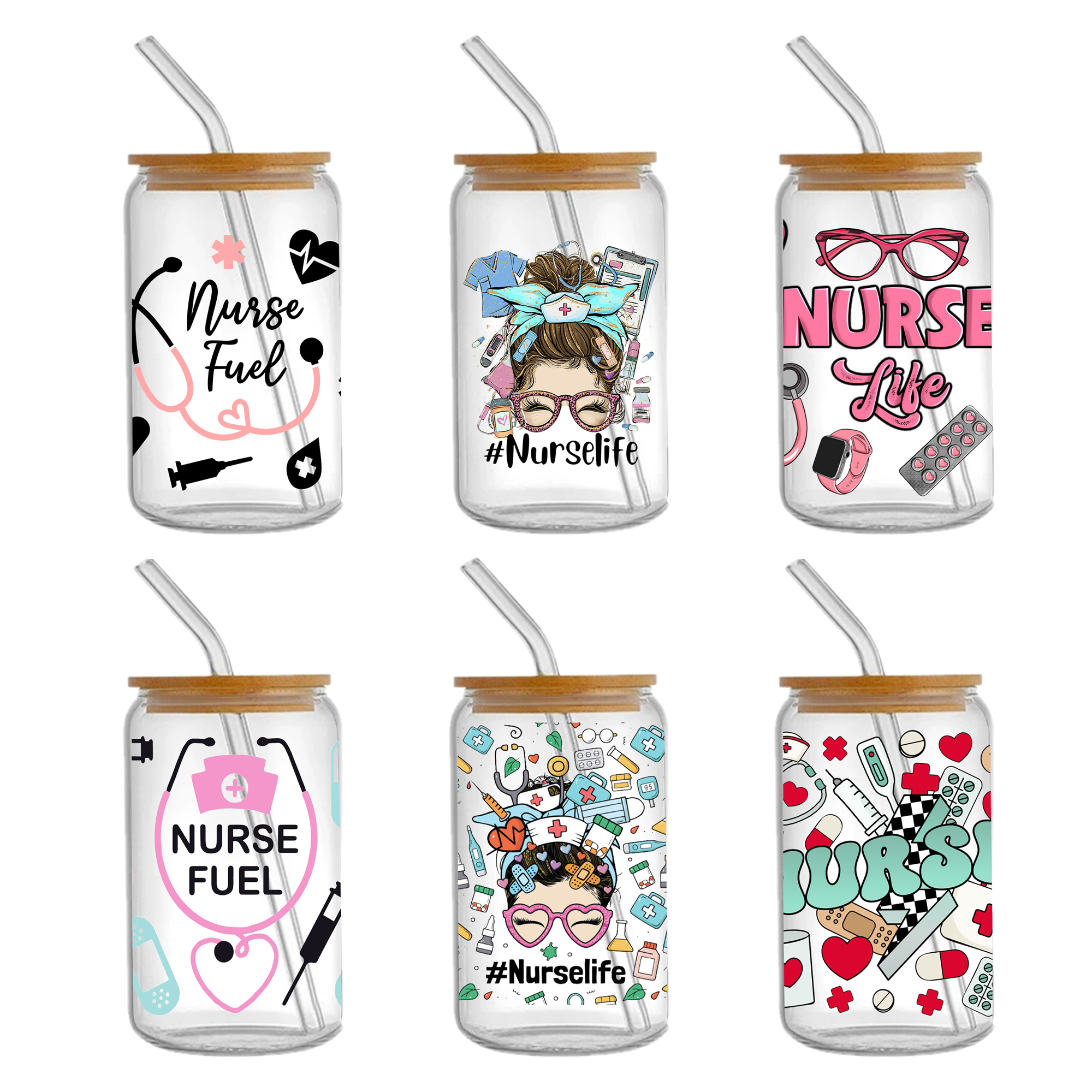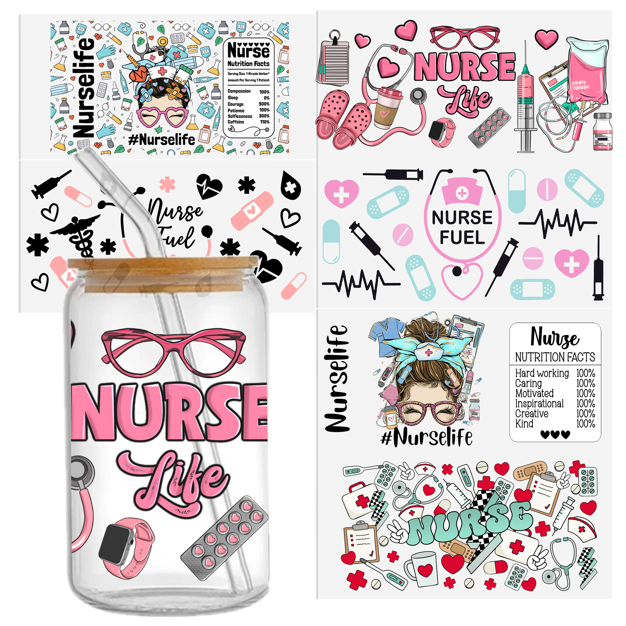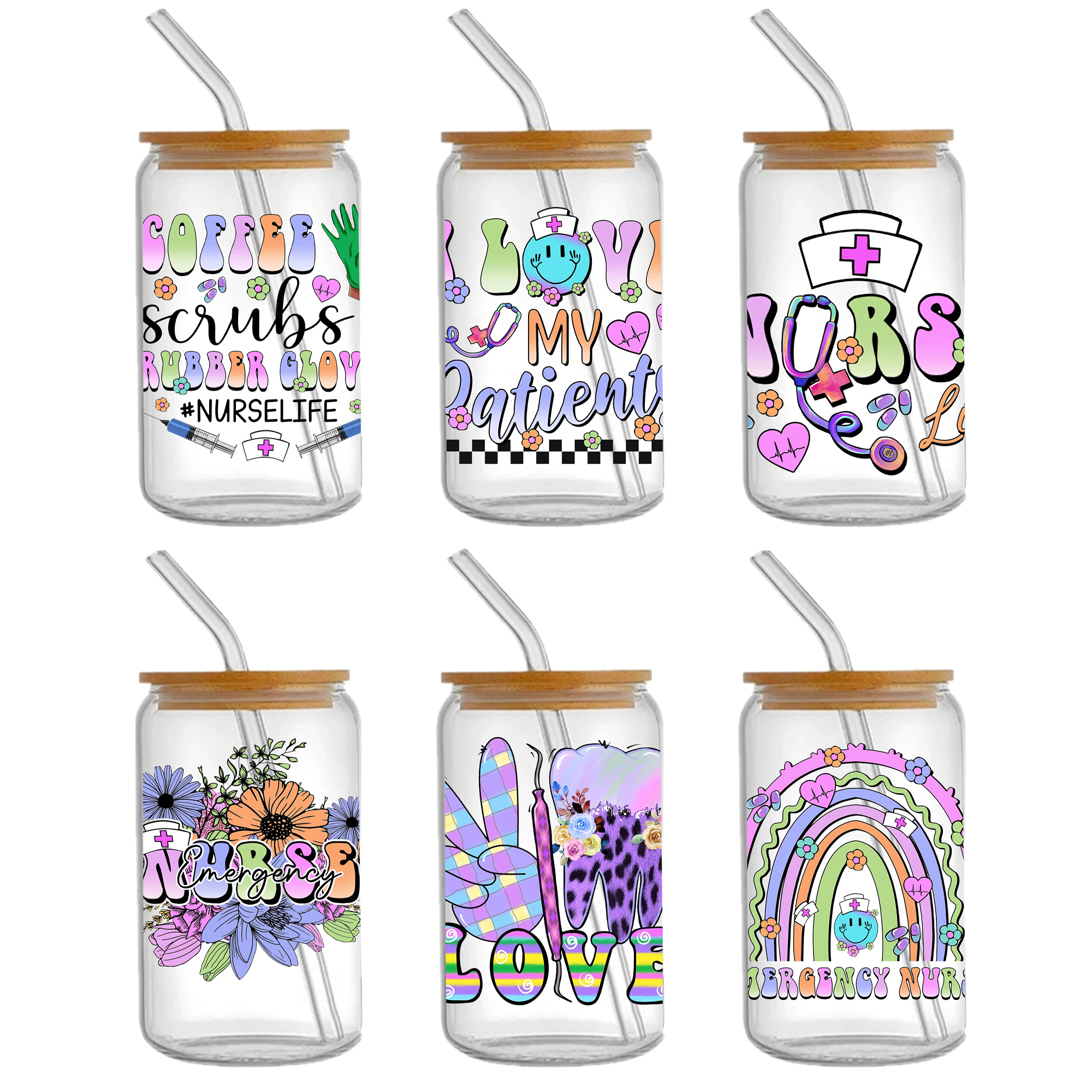5-6pcs Nurses Doctor Health UV DTF Sticker For 16oz Cups Wrap Transfer Sticker Custom Labels DIY Logo Waterproof