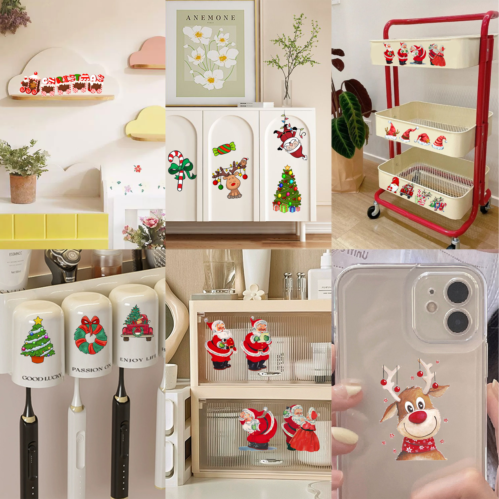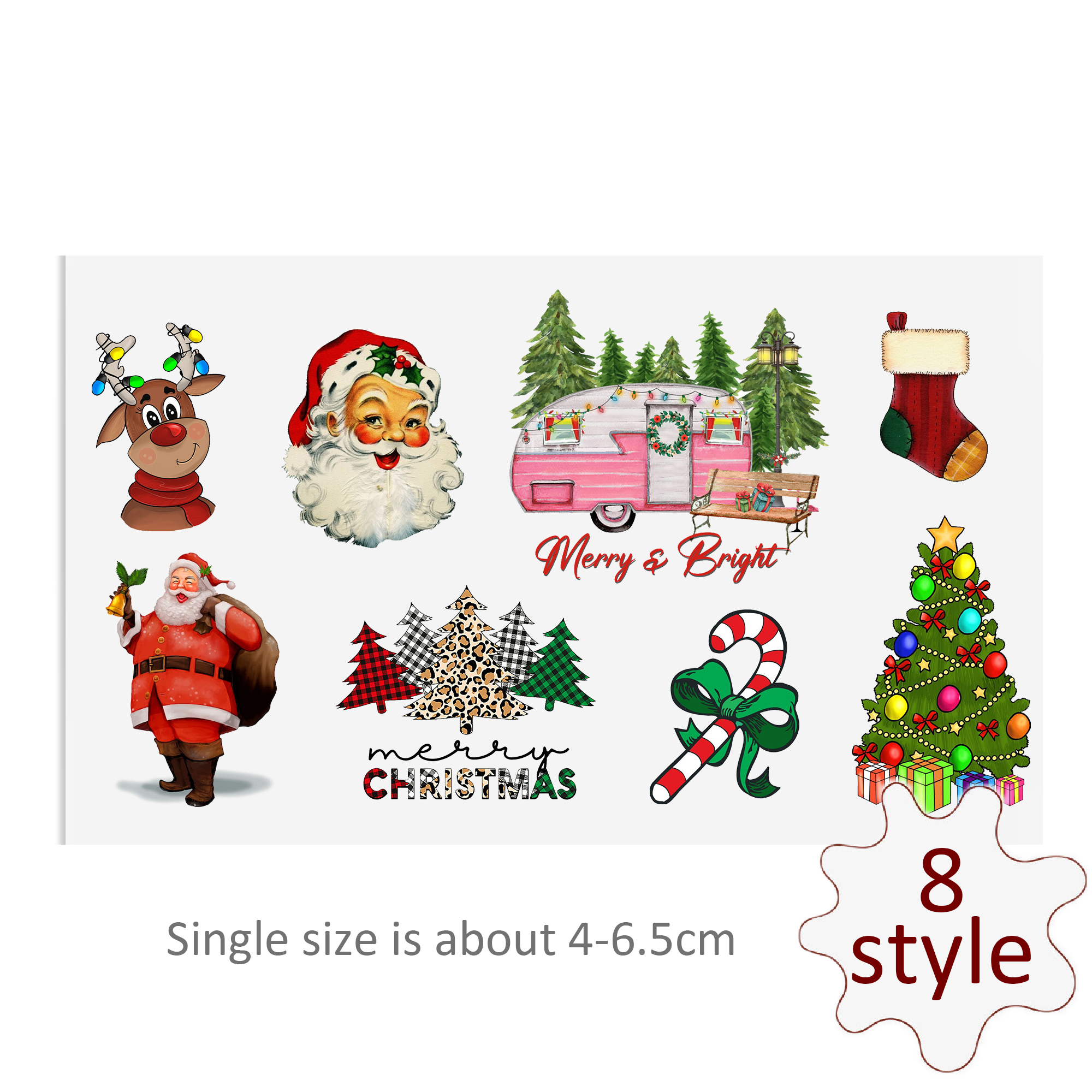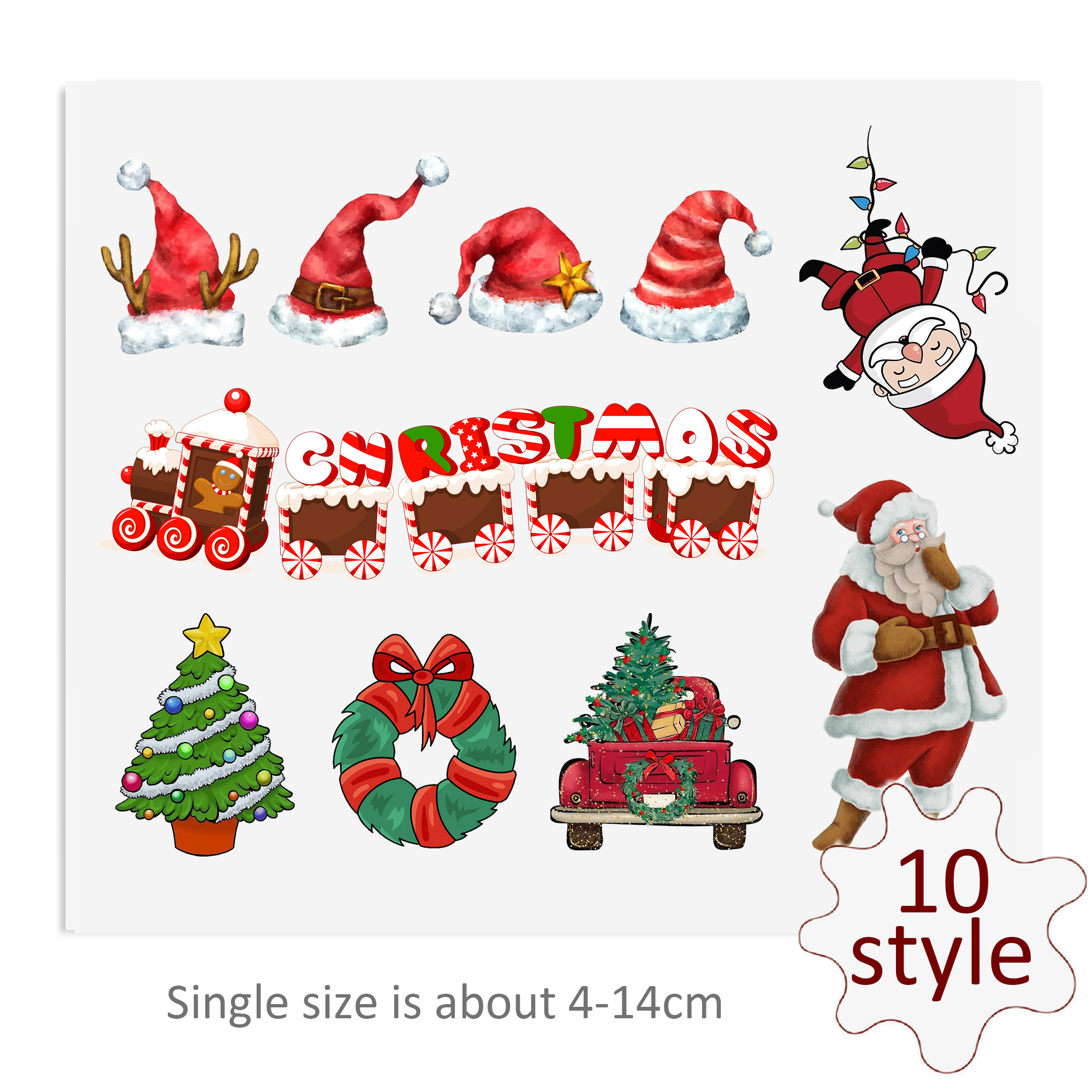 Christmas Series Santa Hat UV DTF Stickers For Glass Cup Decoration Laptop Motorcycle Car Waterproof Sticker For Girl Kids