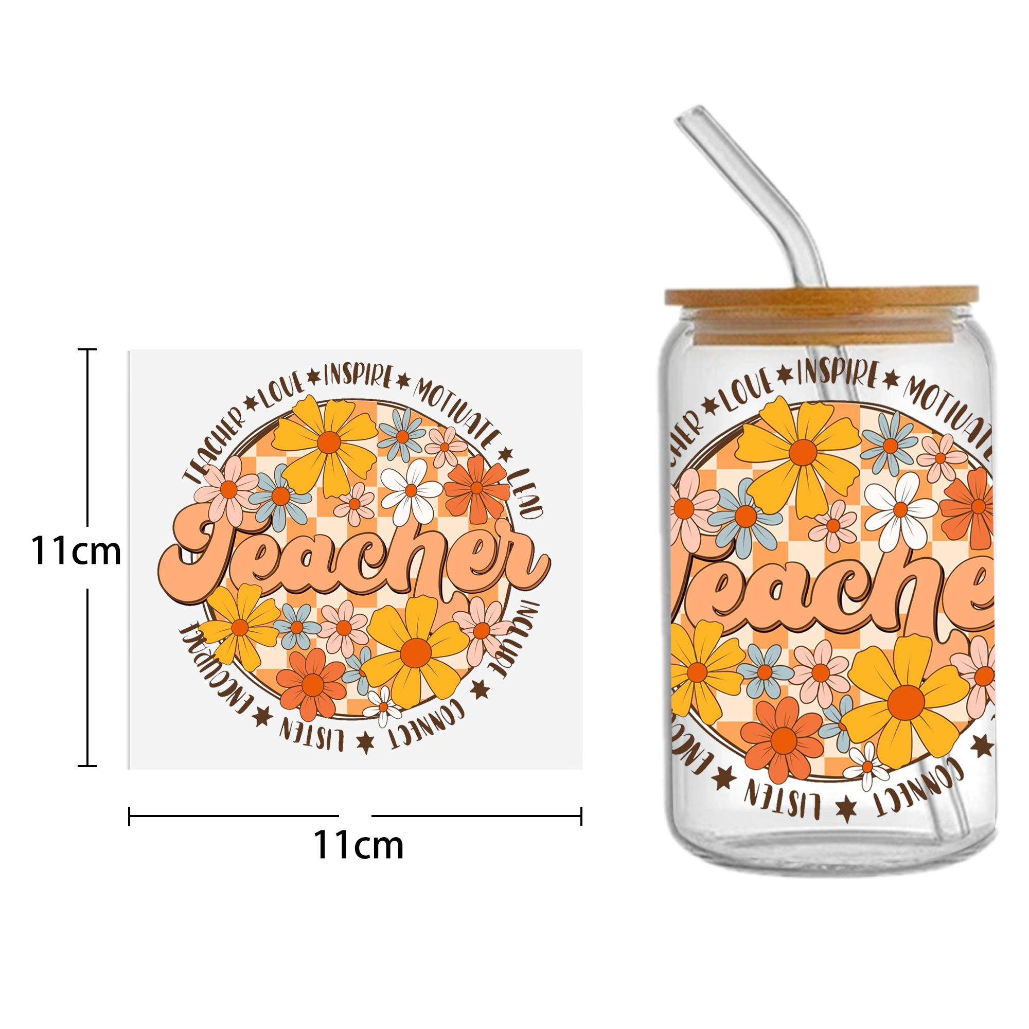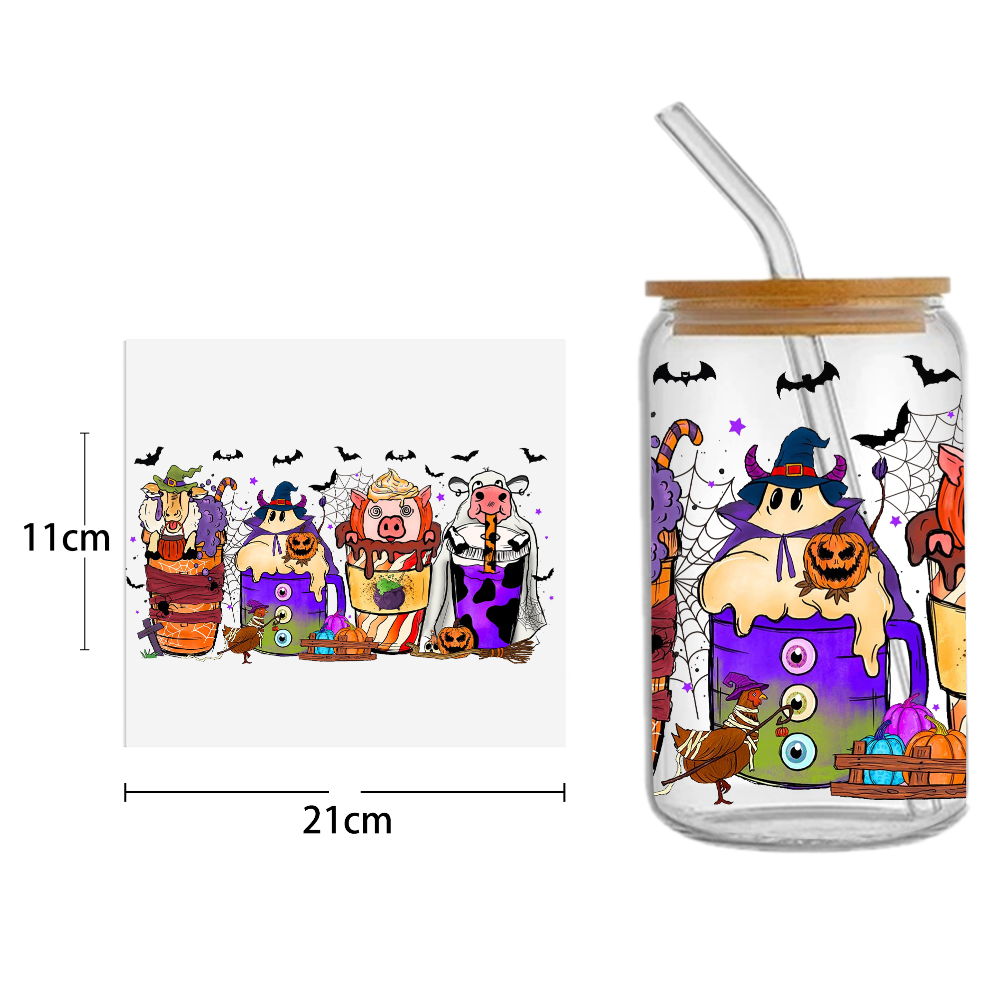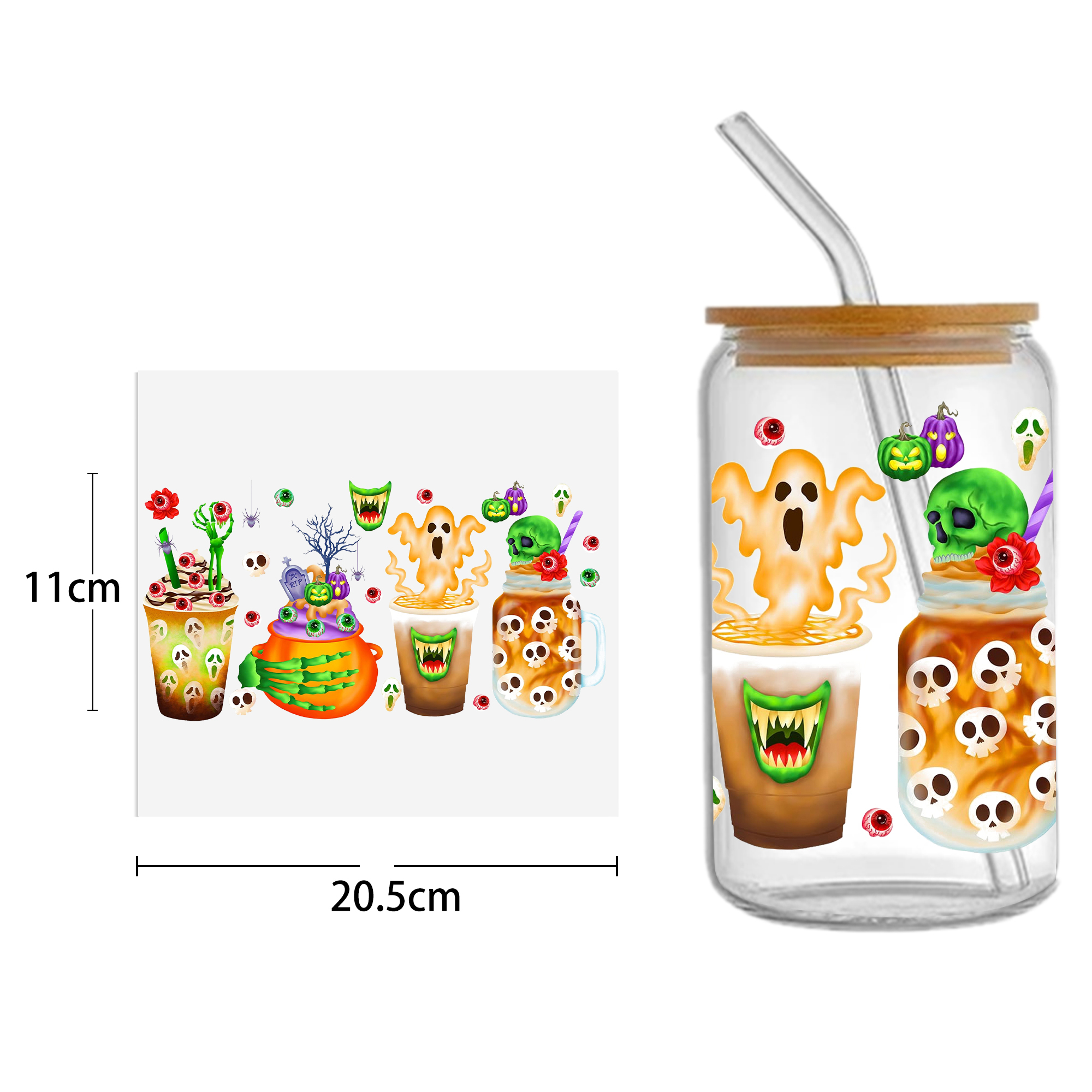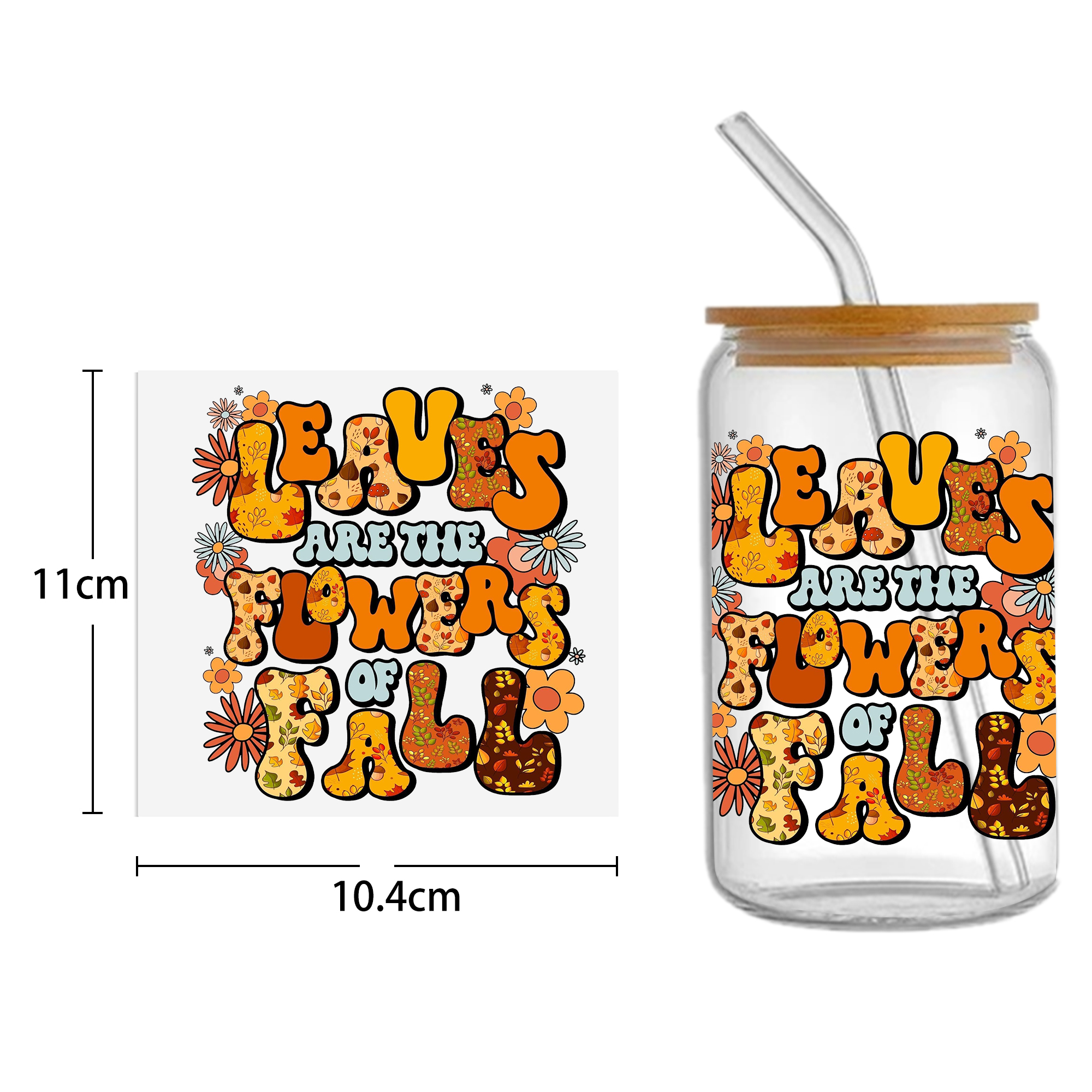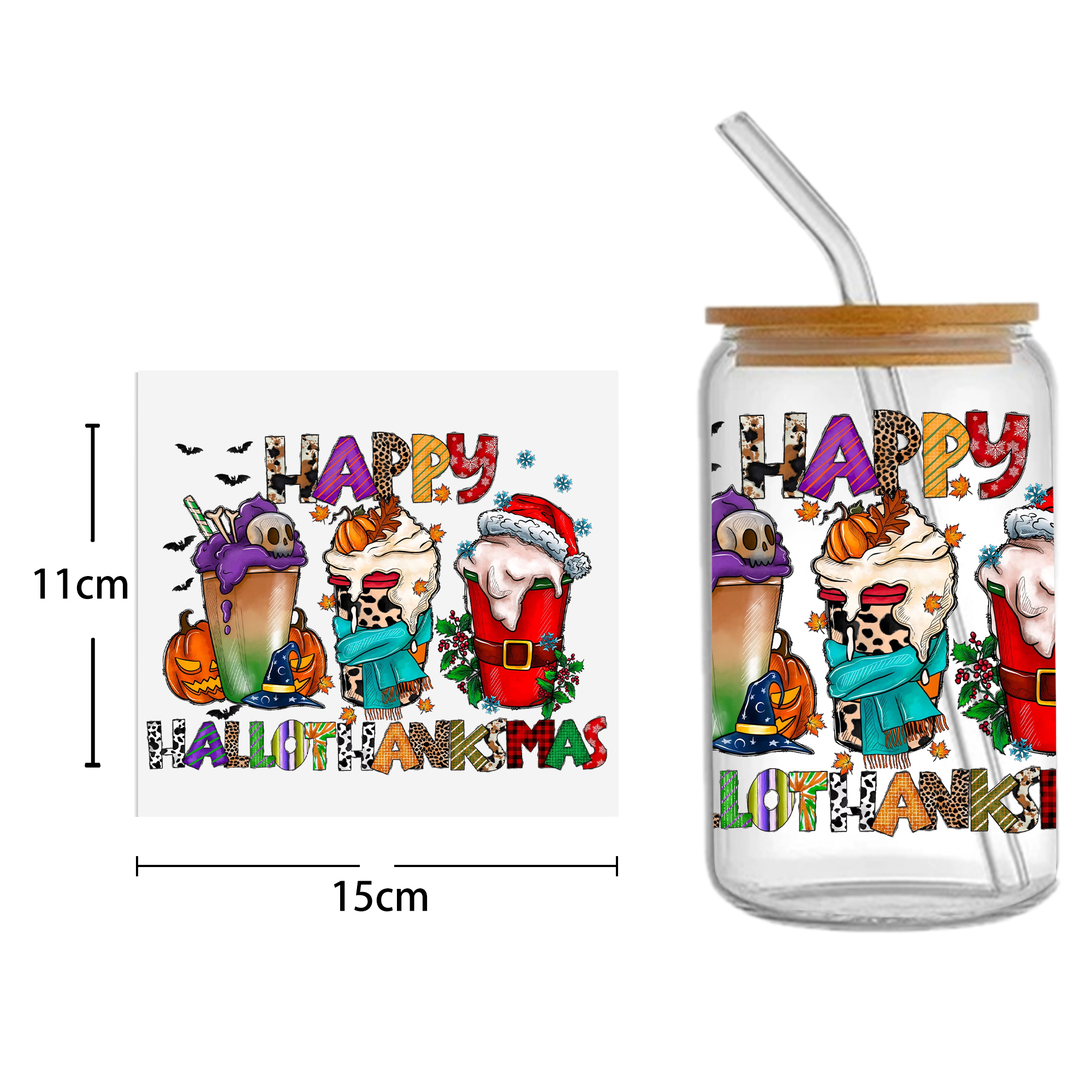 This listing includes one (1) UV DTF adhesive cup wrap designed for a 16oz Glass Cup. (Cup not included.)Premium printed UV DTF wrapPermanent and waterproofCup Wrap Transfer Size: 240x110mm or 240x105mmThe print follows the design draft shown in the pictures. Some styles may feature retro, scratch, crayon graffiti, or other effects, which are intentional and not print machine issues. Please carefully review the style image before purchasing.Some patterns are intricate with many lines, which may result in some glue remaining on the edges after applying the pattern. This is normal. If this concerns you, please reconsider before placing an order.The price is for a single piece (as shown in the picture). Refunds will not be accepted for customer errors regarding quantity or price. Please carefully review before purchasing.How to Apply:Use a vinyl felt squeegee or your hands to press over the design.Peel the design off the transfer backing.Position the design on your cup, starting from the center and working outward.Press the design onto the cup/surface with your fingers or a vinyl felt squeegee to help it adhere.Remove the clear film, and voilà!Please note, the adhesive is extremely strong. Once the decal is placed, it cannot be removed. Wait at least 24 hours after application before using or washing the cup.🖤 Each cup/tumbler may vary in size, so you may need to cut or adjust the wrap/decal accordingly. Our wraps are made to a standard size. We are not responsible for wraps/decals that are incorrectly applied or damaged during application.