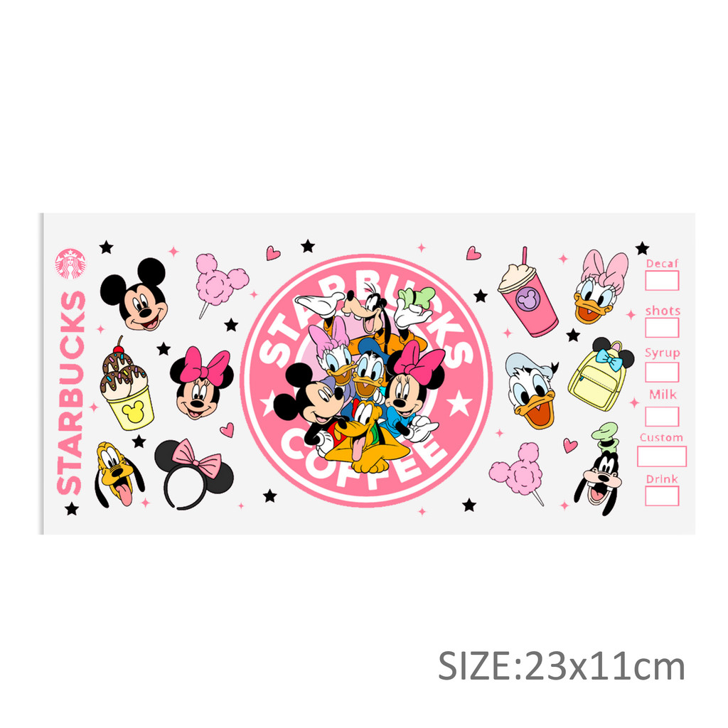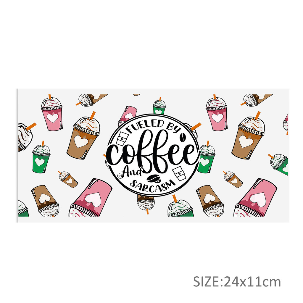 Our UV DTF cup wraps boast exceptional durability and vibrant designs, ensuring they’ll hold up over time. They’re made to a standard size and feature intricate patterns, retro aesthetics, and unique effects such as scratch or crayon graffiti. These characteristics are intentional and add to the overall charm of the product – not issues with the print quality. Please carefully review the style images before you make your purchase to ensure the design aligns with your preferences.