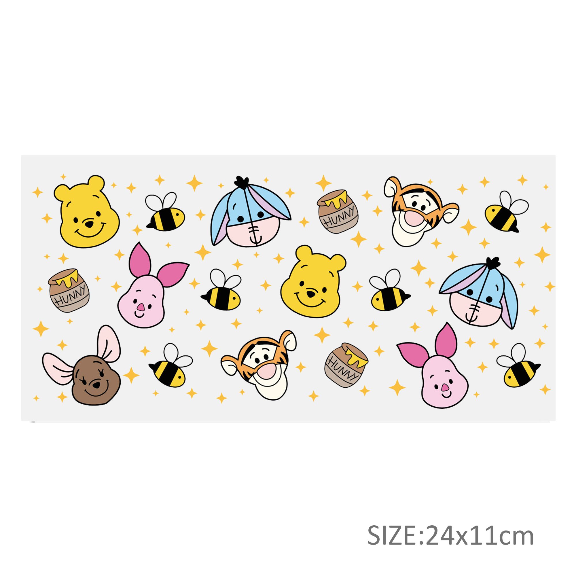 Disney Winnie 16oz DTF Sticker For Cups Cool Personalize UV Wrap Transfer Sticker Custom Labels DIY Logo Waterproof