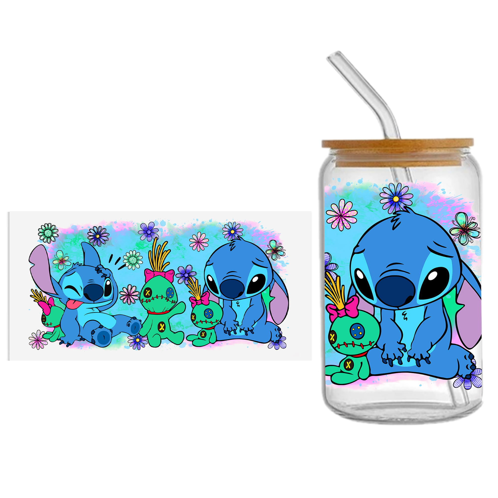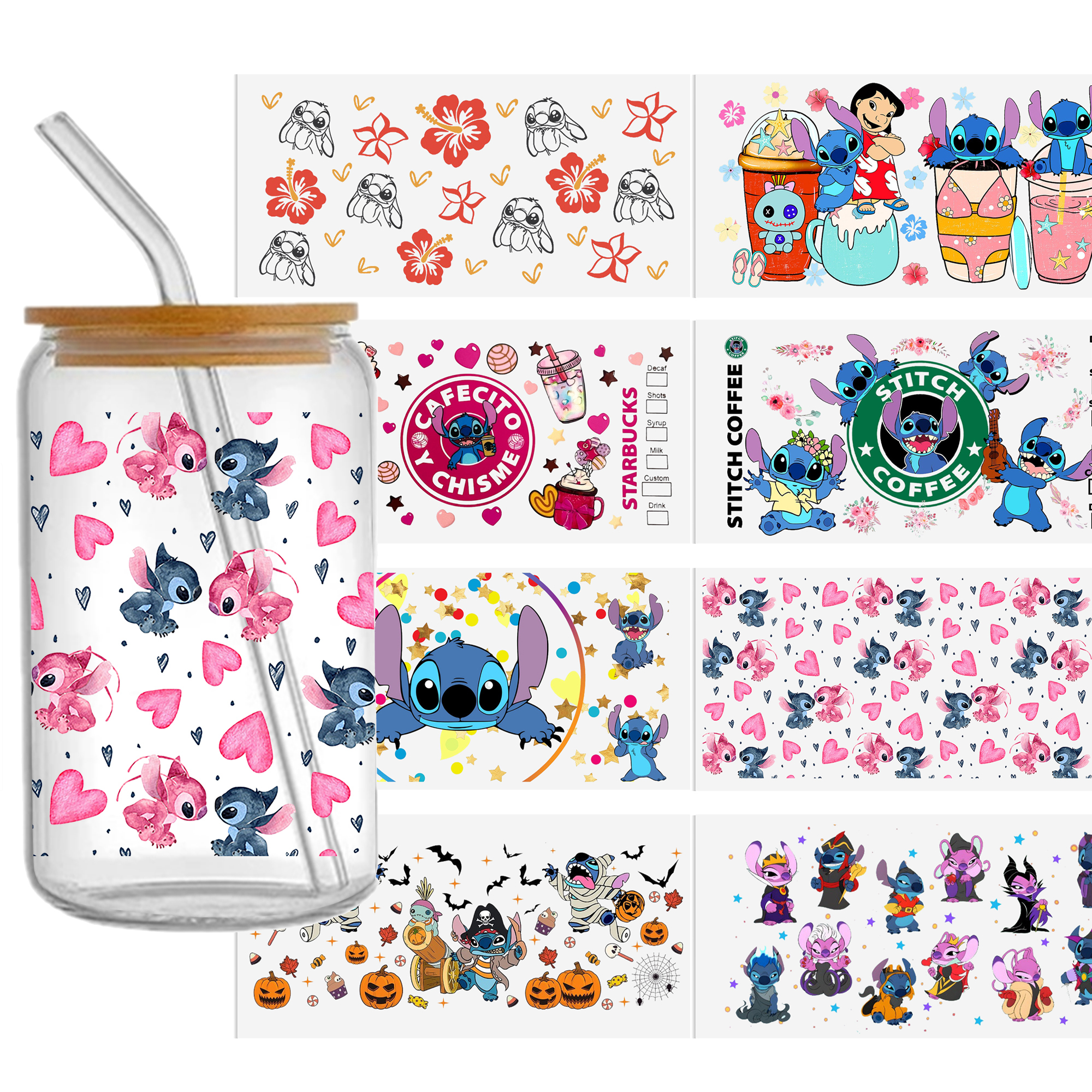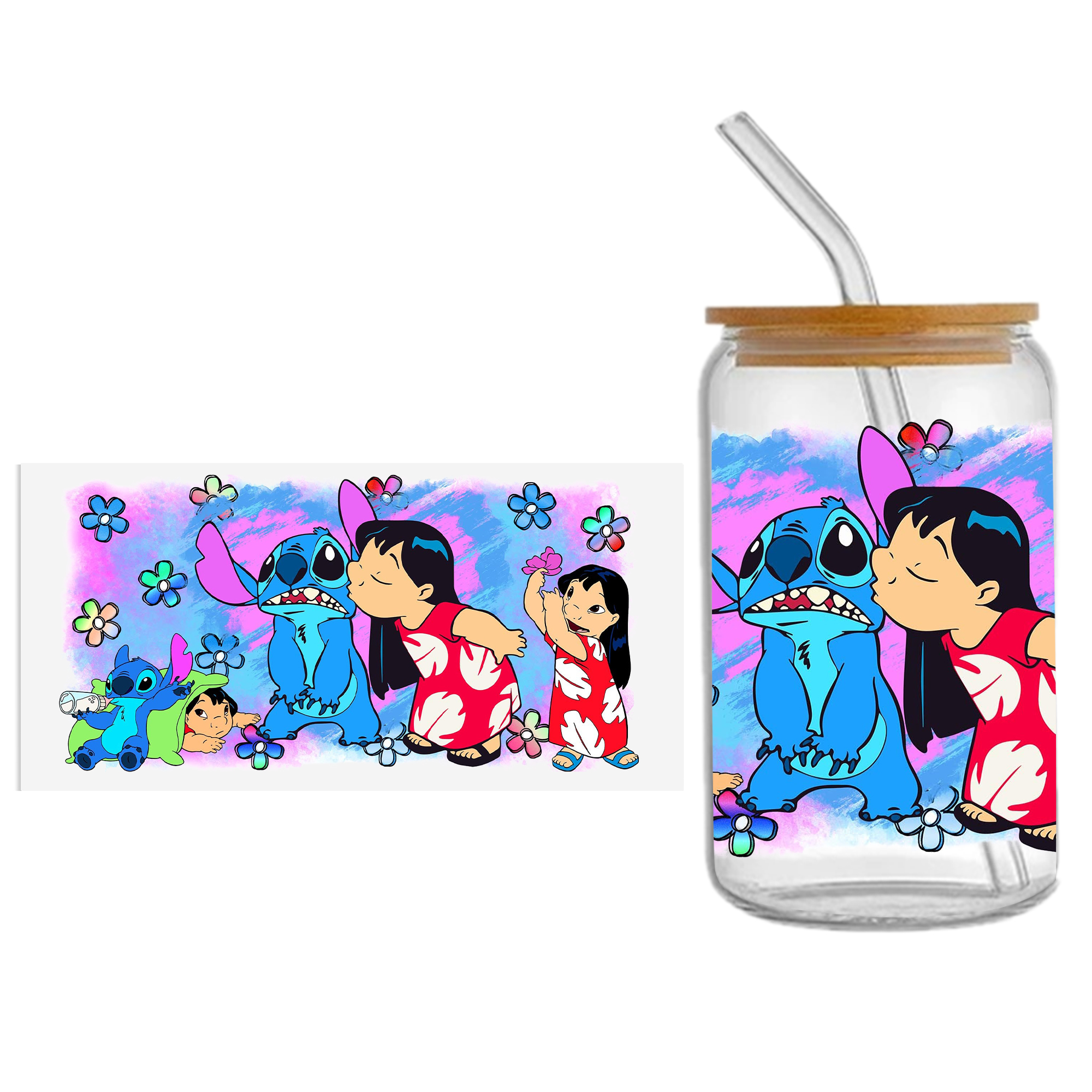 Lilo And Stitch16oz DTF Sticker Cups Cool Personalize UV Wrap Transfer Sticker Custom Label DIY Logo Waterproof