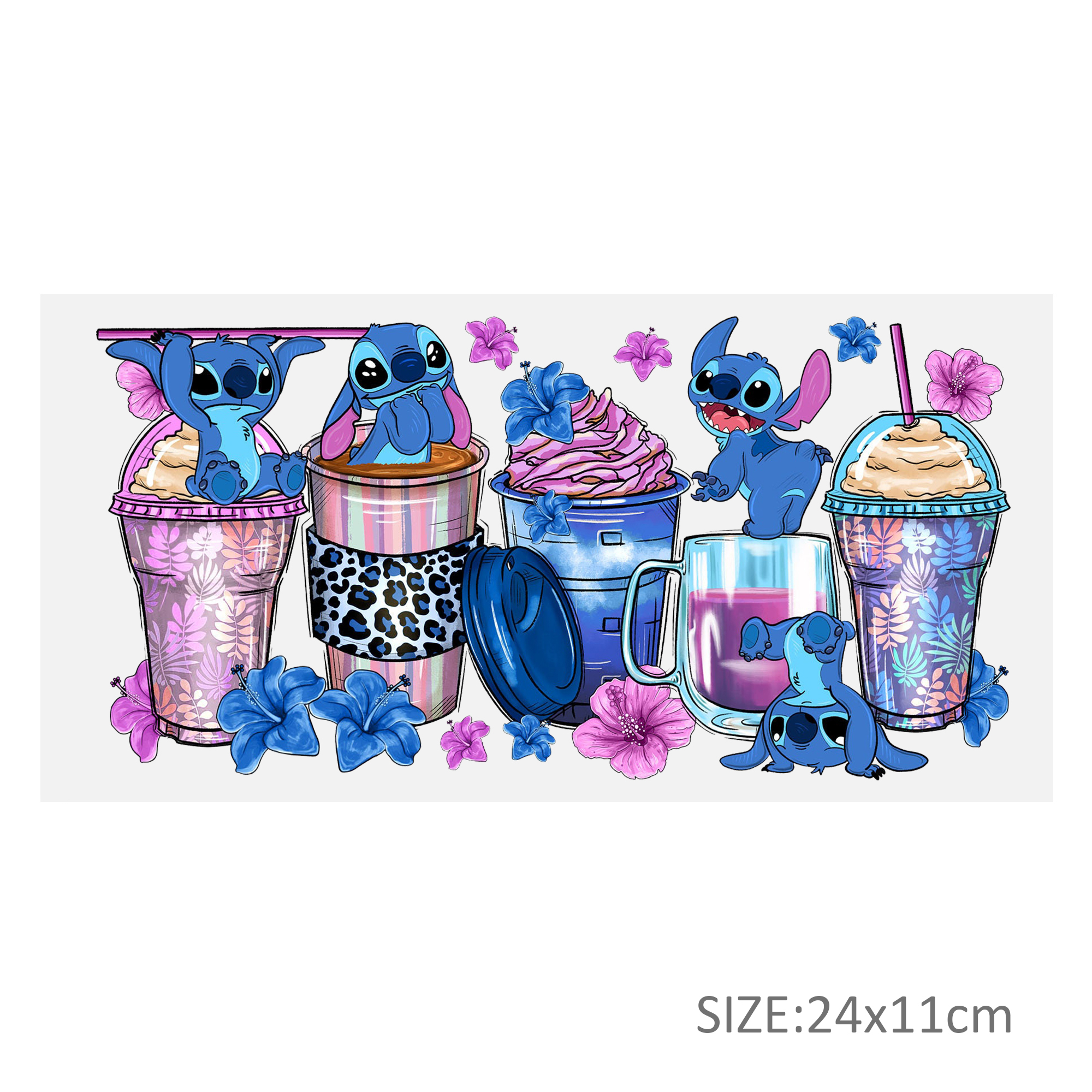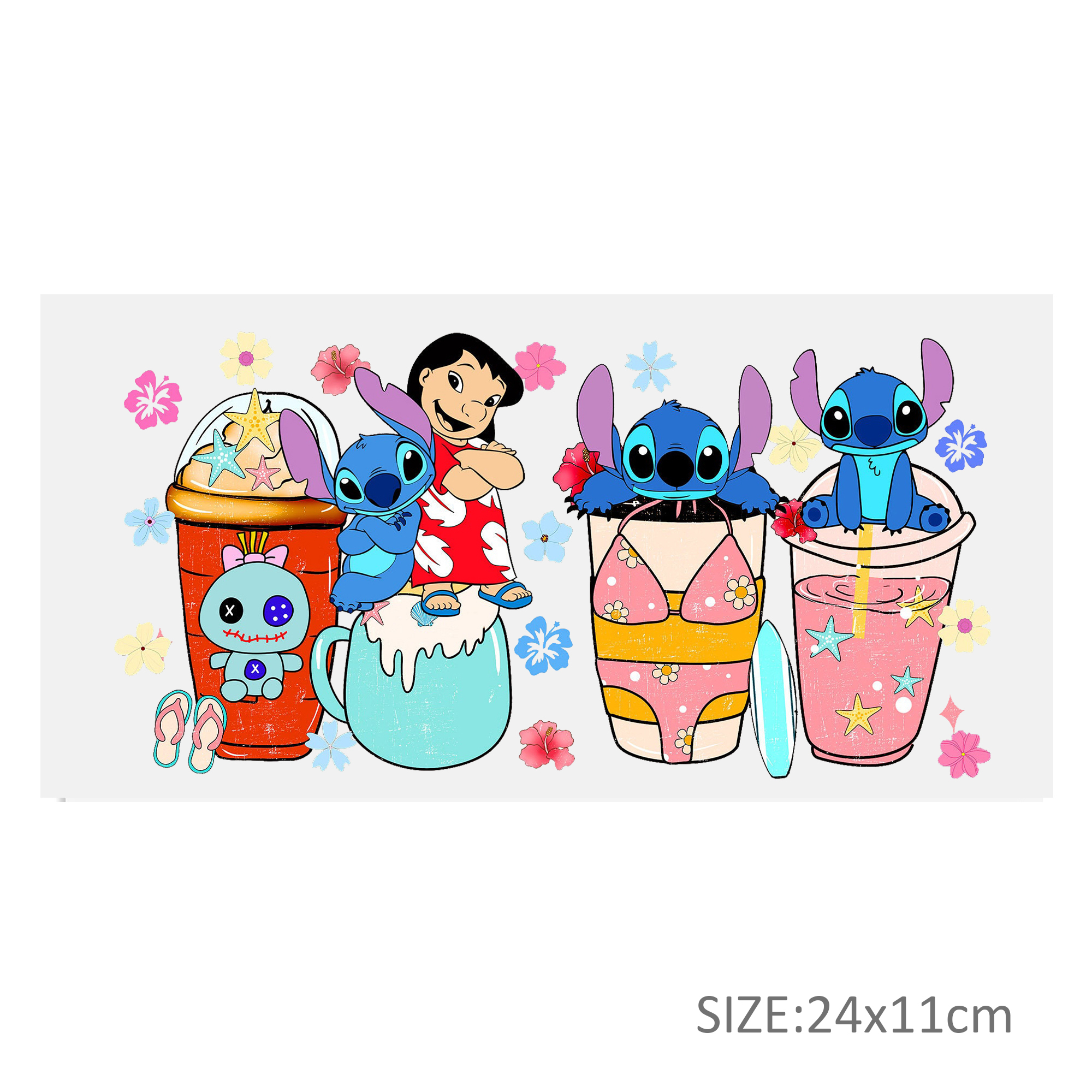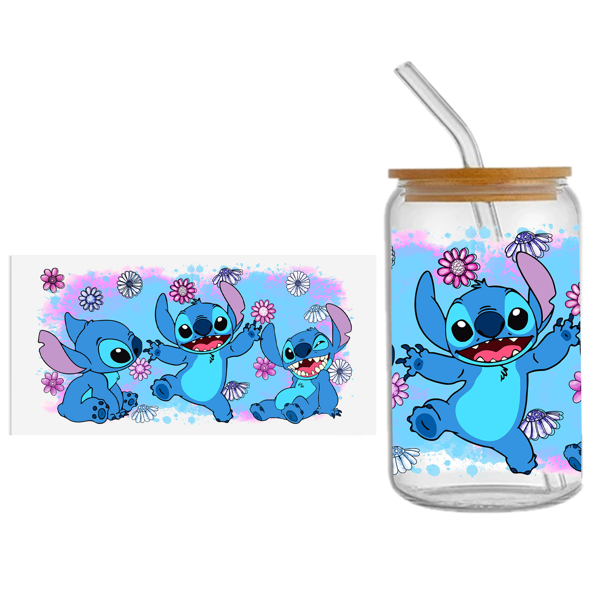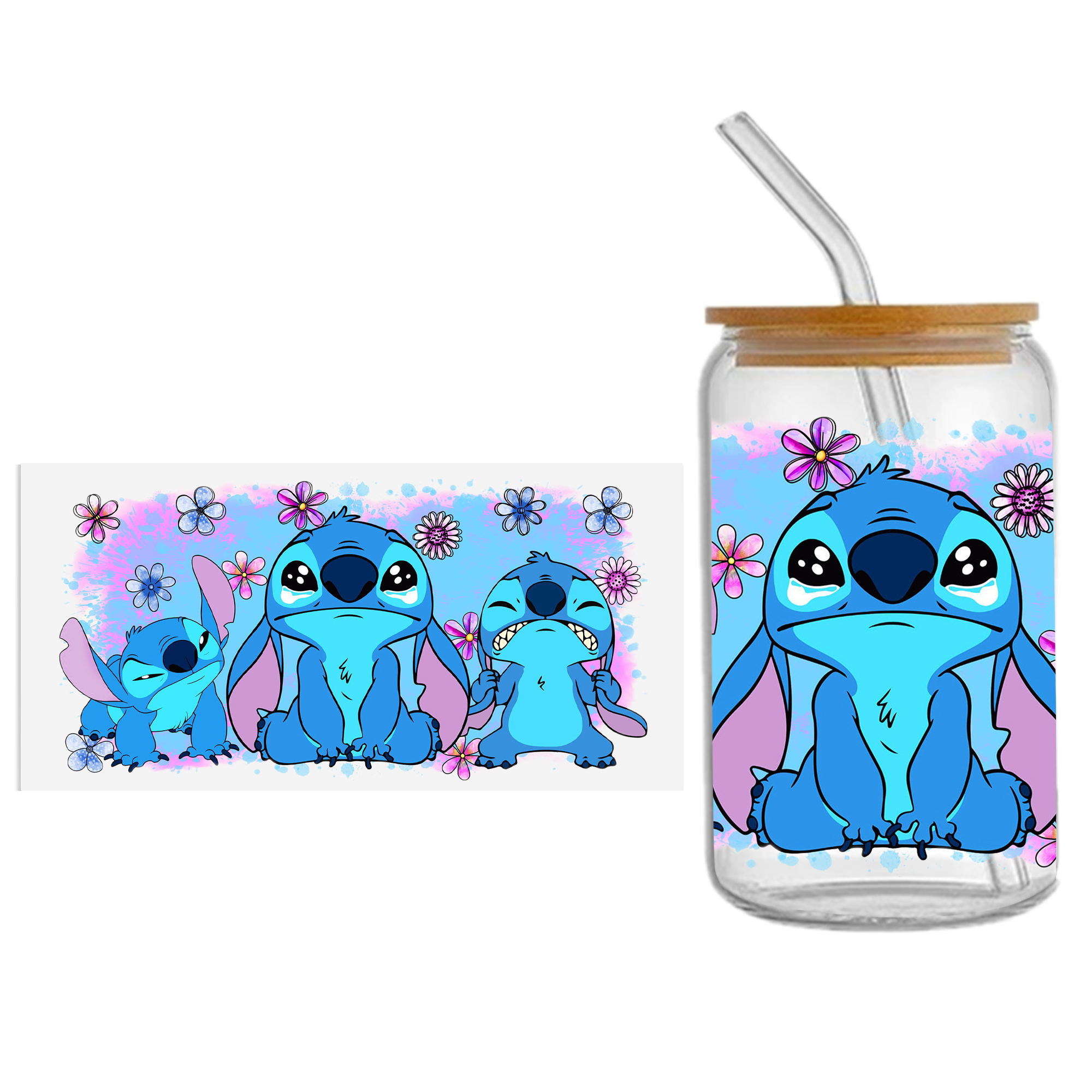 Lilo And Stitch16oz DTF Sticker Cups Cool Personalize UV Wrap Transfer Sticker Custom Label DIY Logo Waterproof