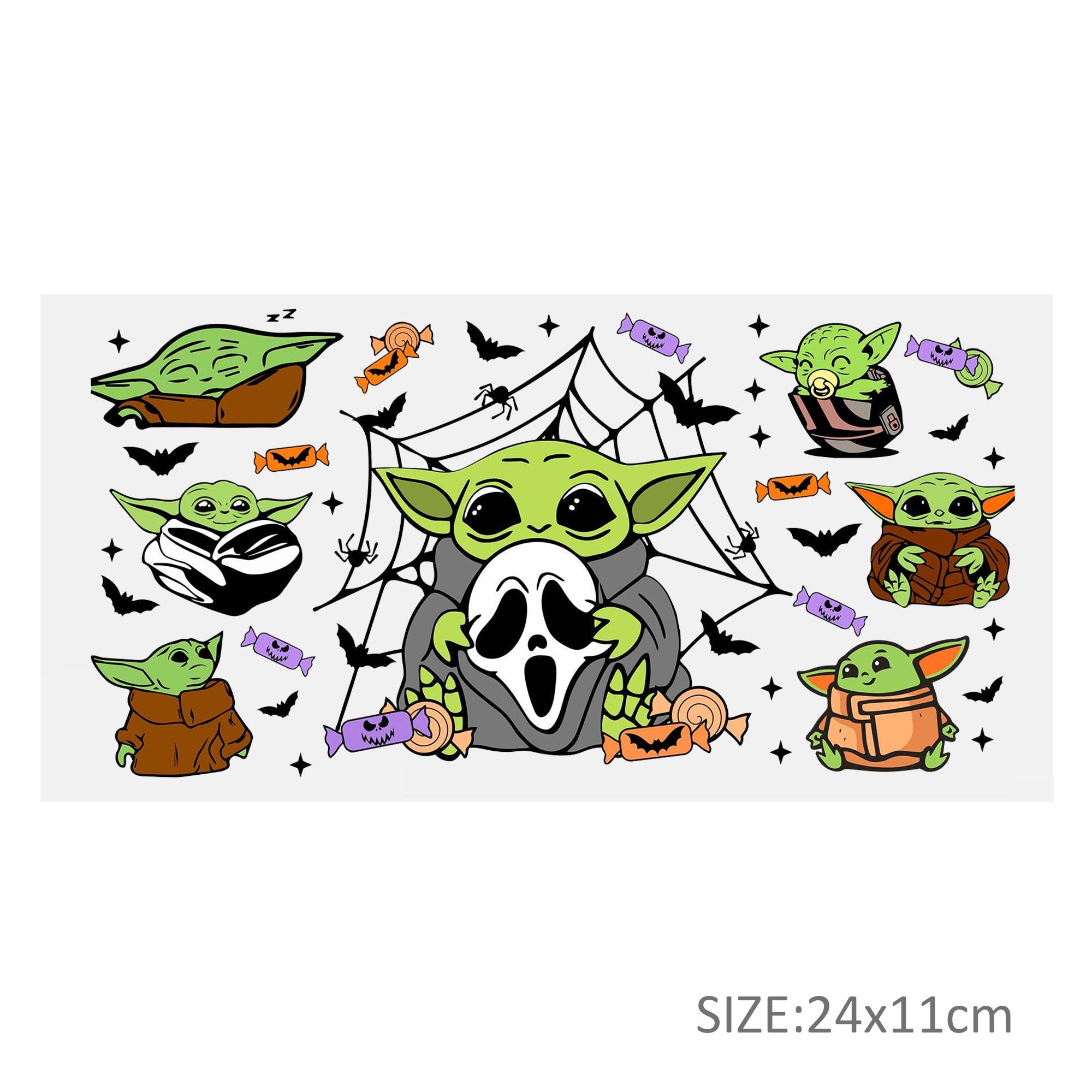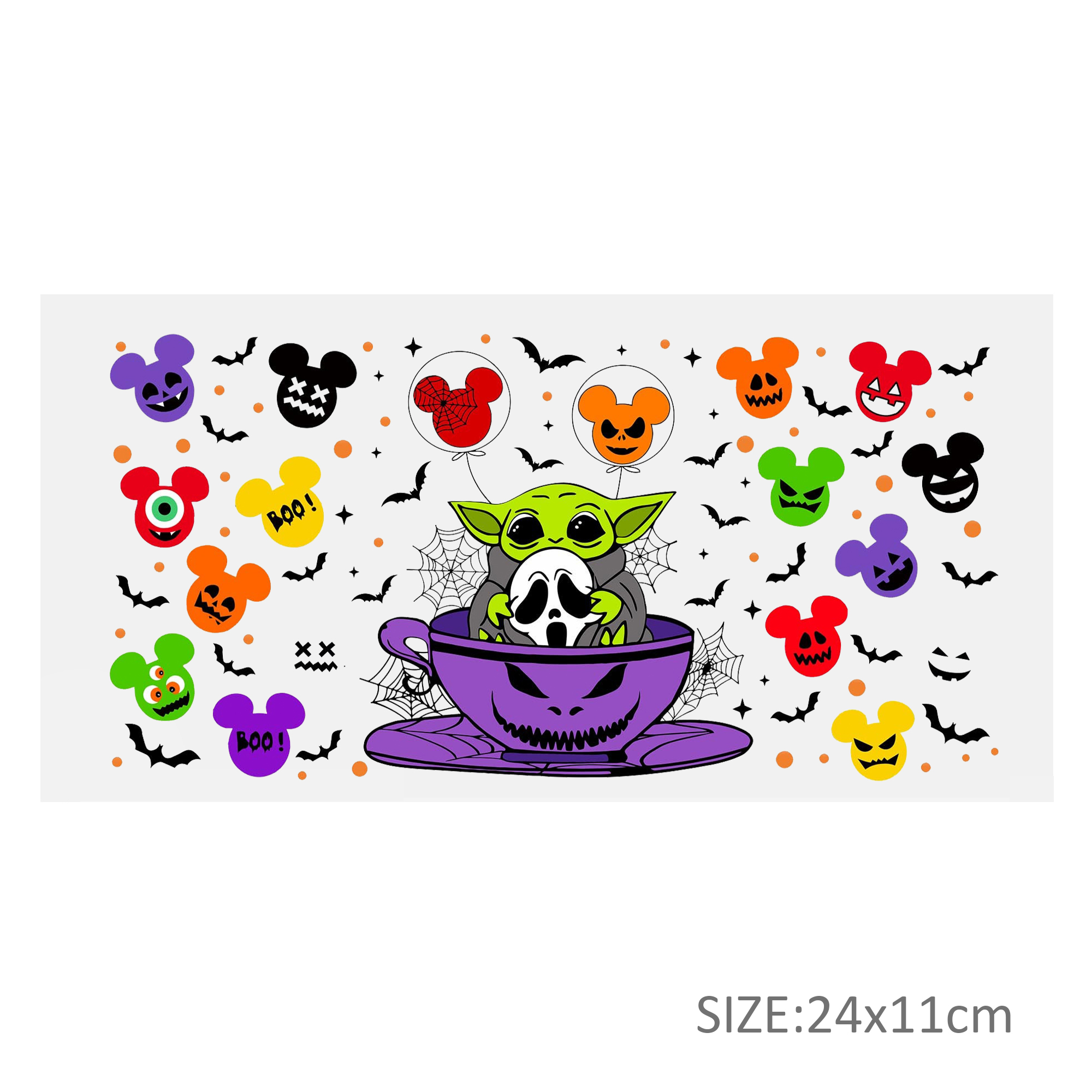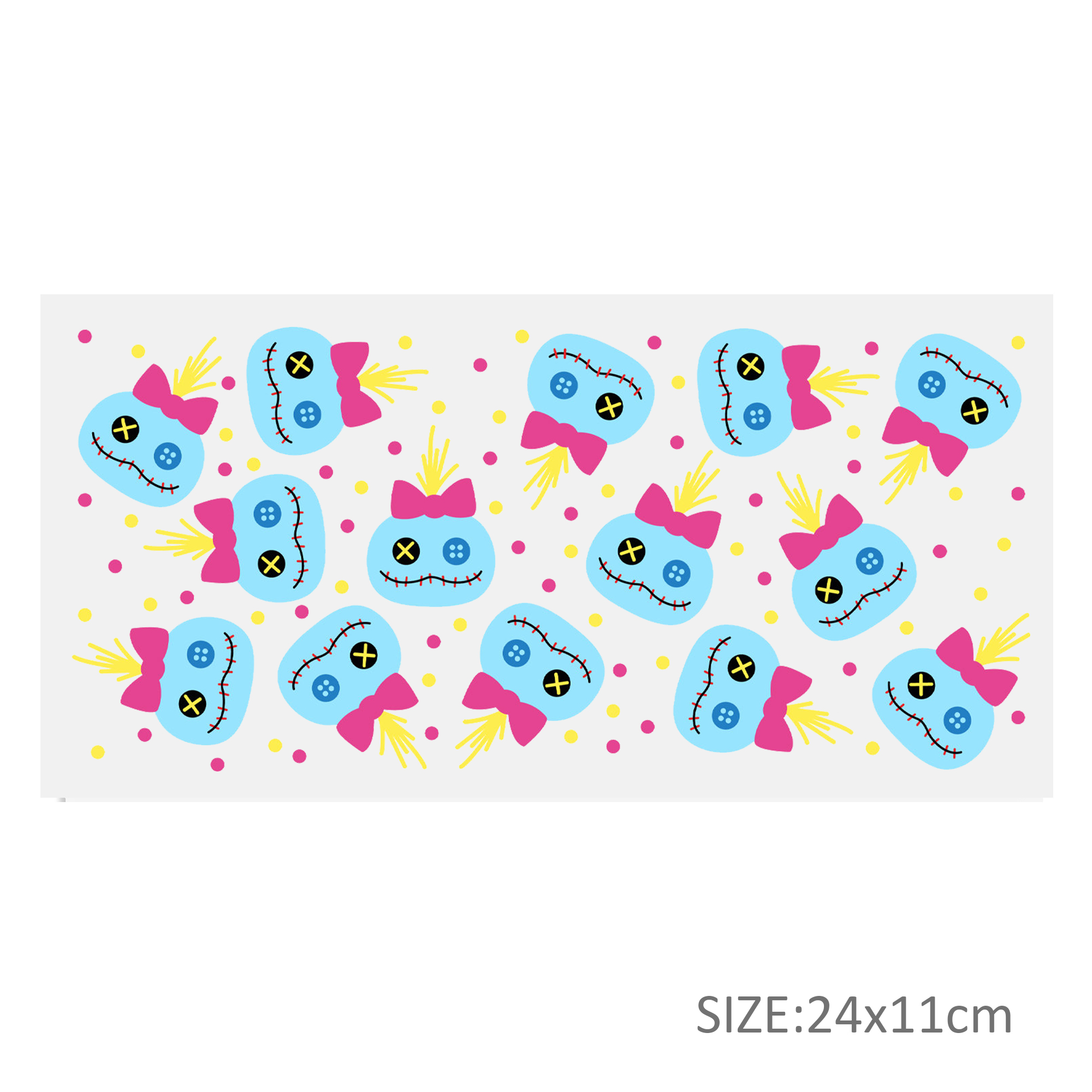 This listing includes one (1) UV DTF adhesive cup wrap designed for a 16oz Glass Cup. (Cup not included.)Premium printed UV DTF wrapPermanent and waterproofCup Wrap Transfer Size: 240x110mm or 240x105mmThe print follows the design draft shown in the pictures. Some styles may feature retro, scratch, crayon graffiti, or other effects, which are intentional and not print machine issues. Please carefully review the style image before purchasing.Some patterns are intricate with many lines, which may result in some glue remaining on the edges after applying the pattern. This is normal. If this concerns you, please reconsider before placing an order.The price is for a single piece (as shown in the picture). Refunds will not be accepted for customer errors regarding quantity or price. Please carefully review before purchasing.How to Apply:Use a vinyl felt squeegee or your hands to press over the design.Peel the design off the transfer backing.Position the design on your cup, starting from the center and working outward.Press the design onto the cup/surface with your fingers or a vinyl felt squeegee to help it adhere.Remove the clear film, and voilà!Please note, the adhesive is extremely strong. Once the decal is placed, it cannot be removed. Wait at least 24 hours after application before using or washing the cup.🖤 Each cup/tumbler may vary in size, so you may need to cut or adjust the wrap/decal accordingly. Our wraps are made to a standard size. We are not responsible for wraps/decals that are incorrectly applied or damaged during application.