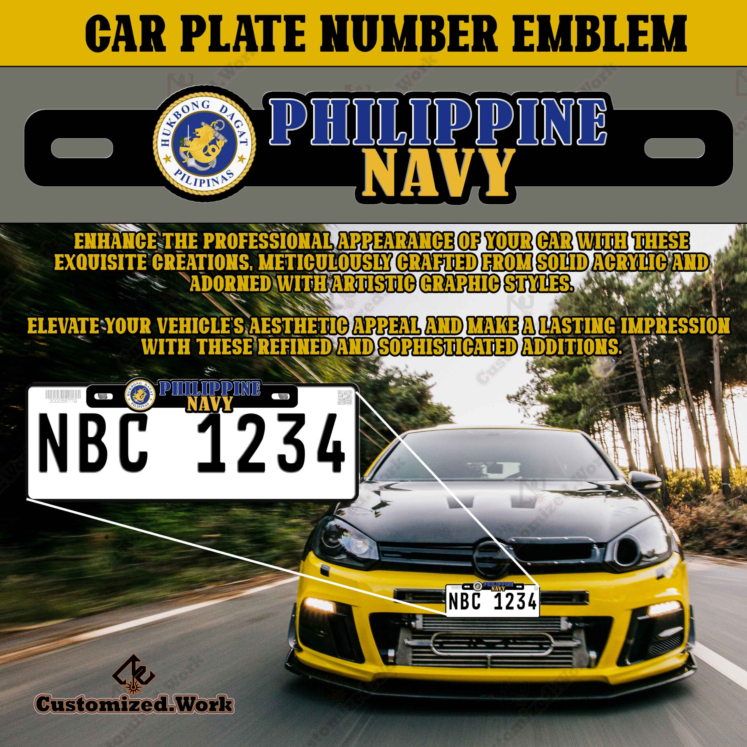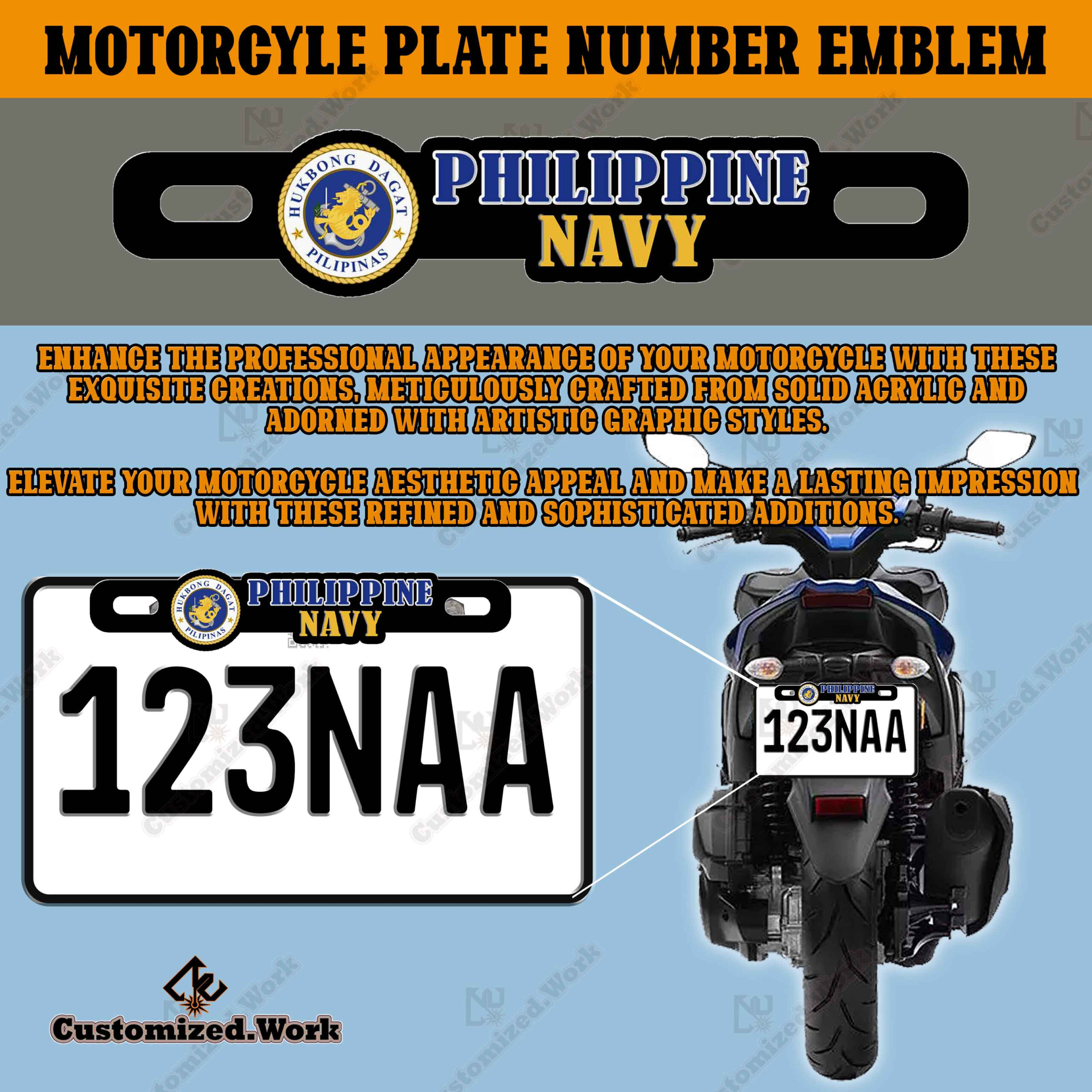 Philippine Navy Hukbong Dagat ng Pilipinas Car Motorcycle Plate Number Emblem Badge