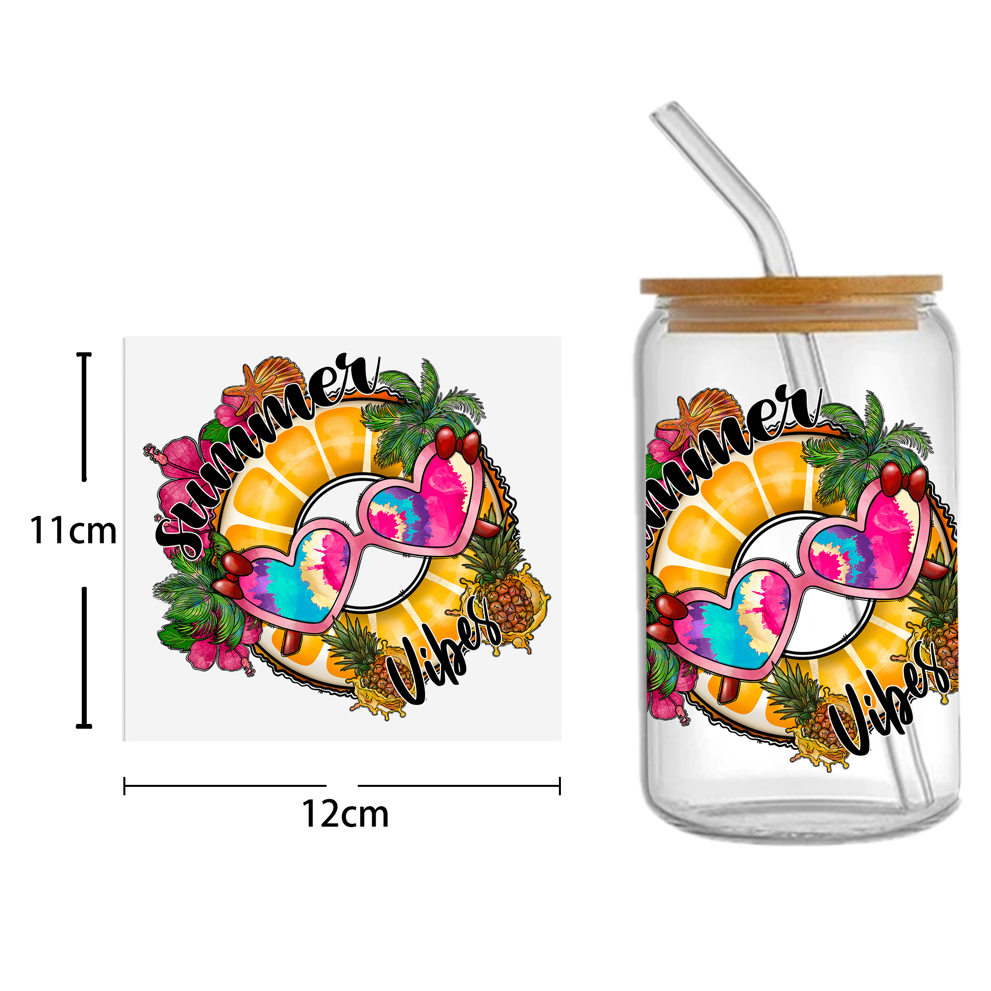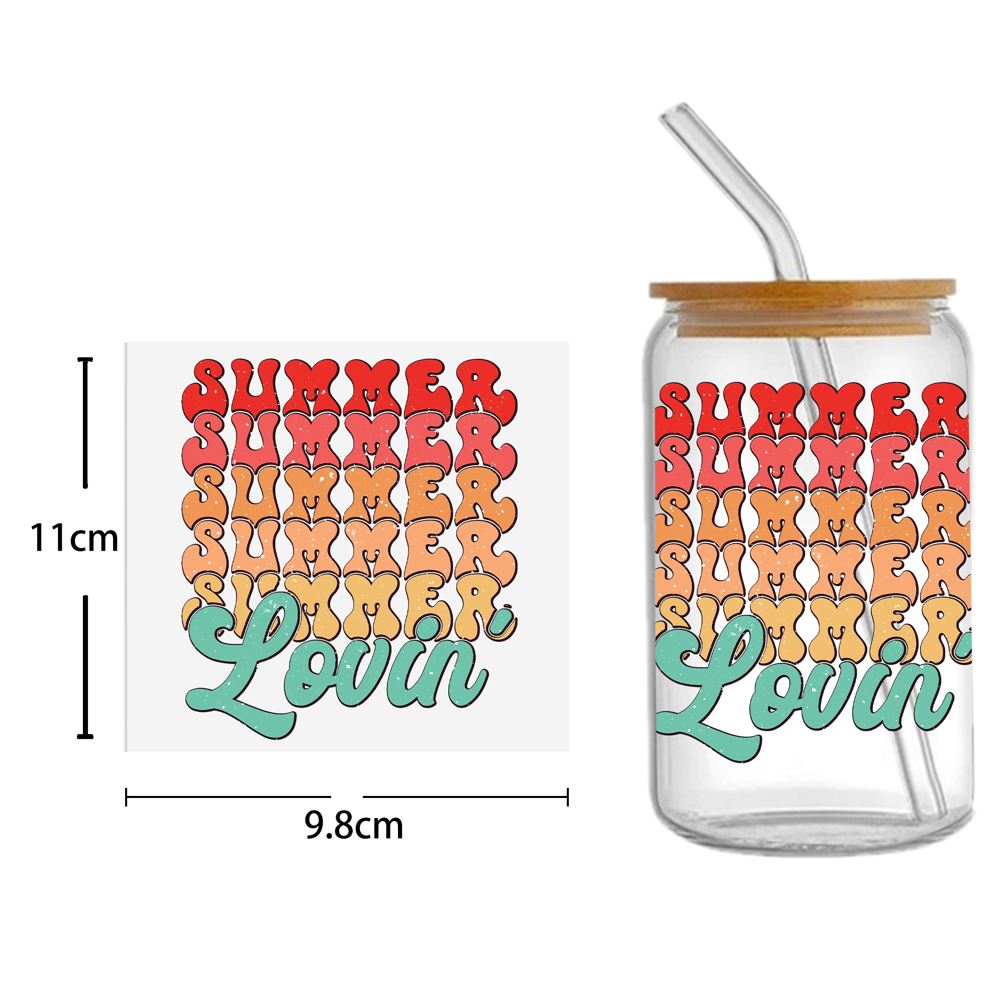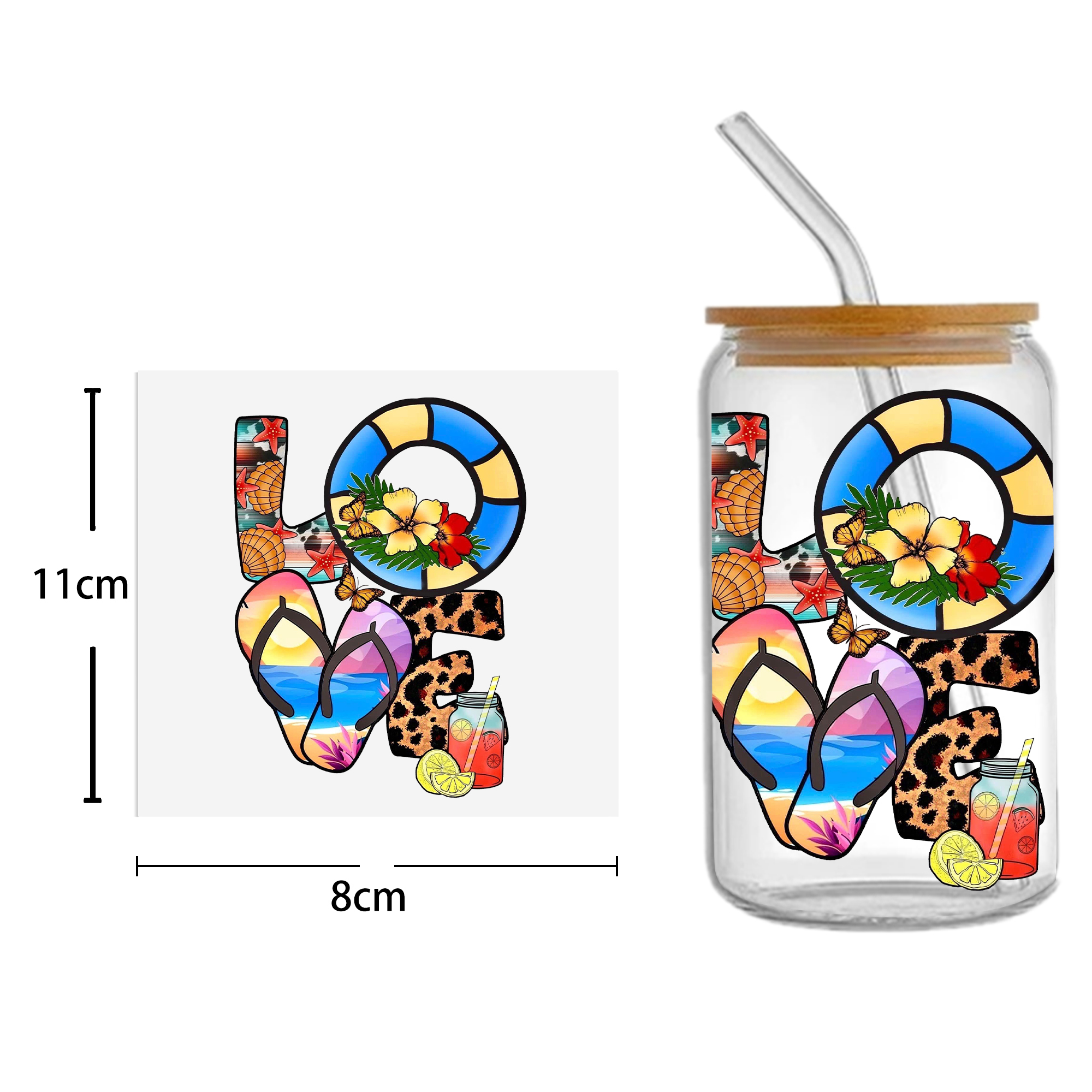This listing includes one (1) UV DTF adhesive cup wrap designed for a 16oz Glass Cup. (Cup not included.)Premium printed UV DTF wrapPermanent and waterproofCup Wrap Transfer Size: 240x110mm or 240x105mmThe print follows the design draft shown in the pictures. Some styles may feature retro, scratch, crayon graffiti, or other effects, which are intentional and not print machine issues. Please carefully review the style image before purchasing.Some patterns are intricate with many lines, which may result in some glue remaining on the edges after applying the pattern. This is normal. If this concerns you, please reconsider before placing an order.The price is for a single piece (as shown in the picture). Refunds will not be accepted for customer errors regarding quantity or price. Please carefully review before purchasing.How to Apply:Use a vinyl felt squeegee or your hands to press over the design.Peel the design off the transfer backing.Position the design on your cup, starting from the center and working outward.Press the design onto the cup/surface with your fingers or a vinyl felt squeegee to help it adhere.Remove the clear film, and voilà!Please note, the adhesive is extremely strong. Once the decal is placed, it cannot be removed. Wait at least 24 hours after application before using or washing the cup.🖤 Each cup/tumbler may vary in size, so you may need to cut or adjust the wrap/decal accordingly. Our wraps are made to a standard size. We are not responsible for wraps/decals that are incorrectly applied or damaged during application.