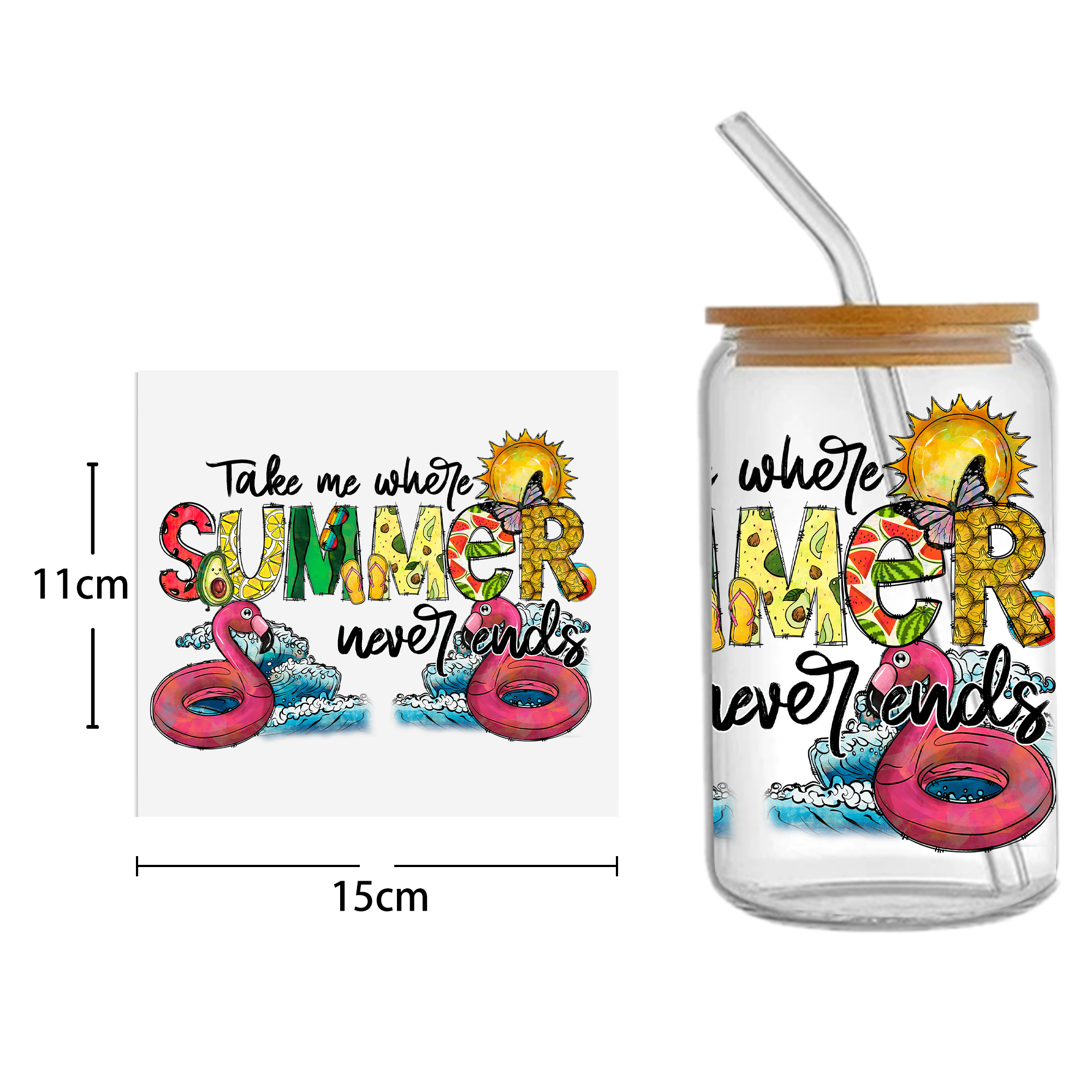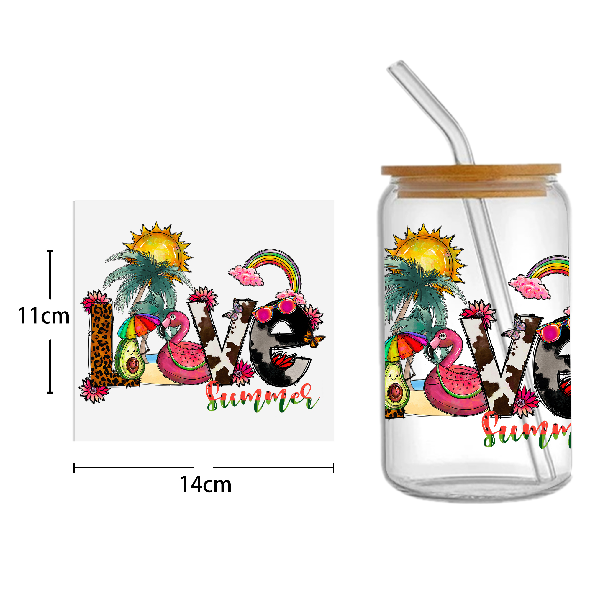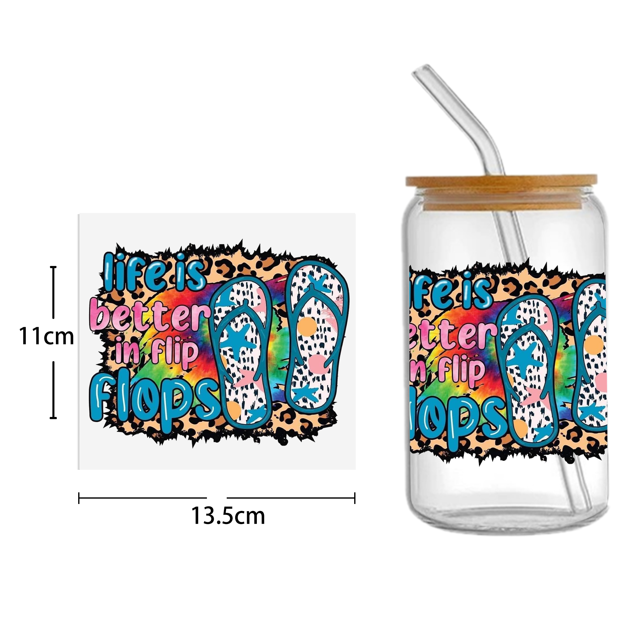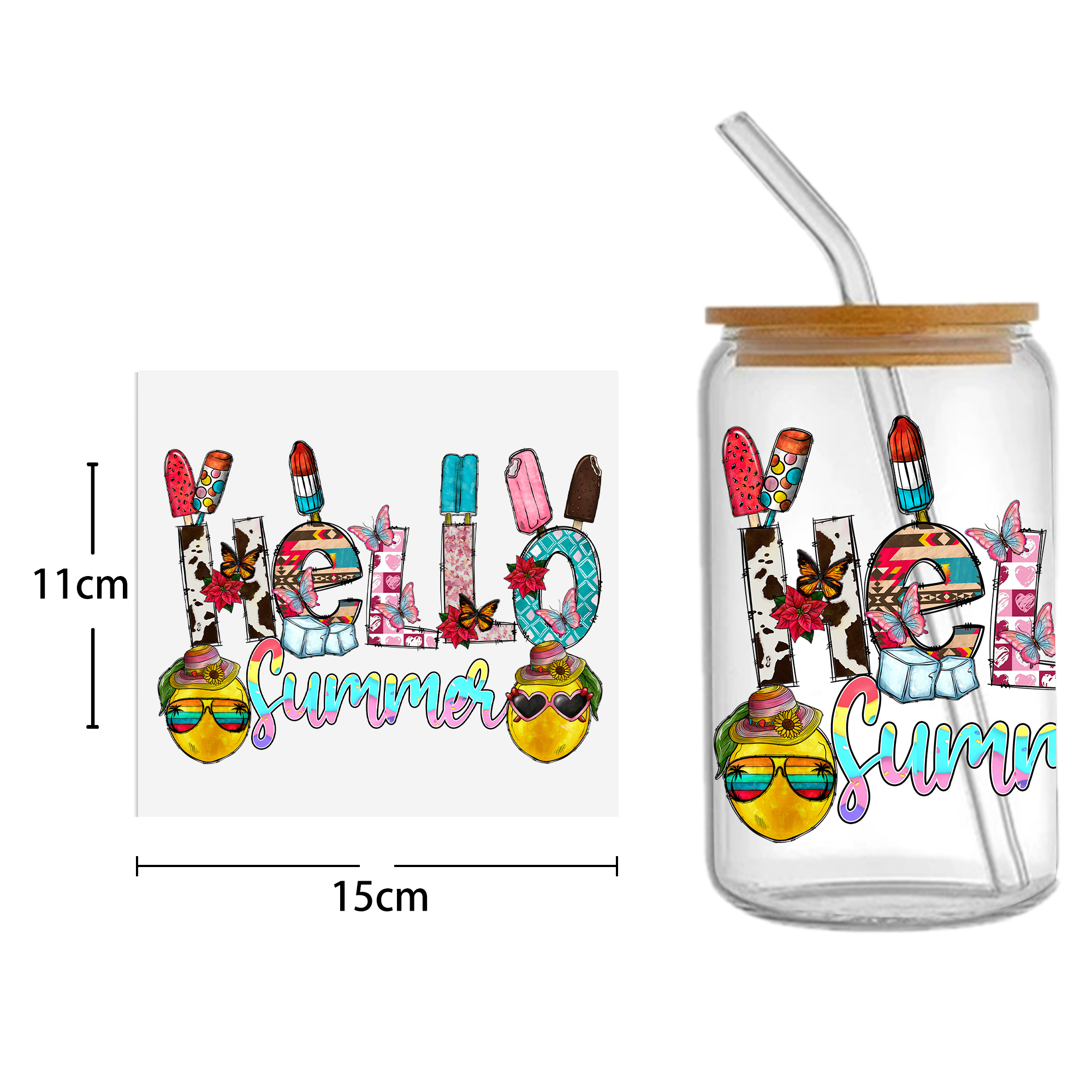 This listing includes one (1) UV DTF adhesive cup wrap designed for a 16oz Glass Cup. (Cup not included.)Premium printed UV DTF wrapPermanent and waterproofCup Wrap Transfer Size: 240x110mm or 240x105mmThe print follows the design draft shown in the pictures. Some styles may feature retro, scratch, crayon graffiti, or other effects, which are intentional and not print machine issues. Please carefully review the style image before purchasing.Some patterns are intricate with many lines, which may result in some glue remaining on the edges after applying the pattern. This is normal. If this concerns you, please reconsider before placing an order.The price is for a single piece (as shown in the picture). Refunds will not be accepted for customer errors regarding quantity or price. Please carefully review before purchasing.How to Apply:Use a vinyl felt squeegee or your hands to press over the design.Peel the design off the transfer backing.Position the design on your cup, starting from the center and working outward.Press the design onto the cup/surface with your fingers or a vinyl felt squeegee to help it adhere.Remove the clear film, and voilà!Please note, the adhesive is extremely strong. Once the decal is placed, it cannot be removed. Wait at least 24 hours after application before using or washing the cup.🖤 Each cup/tumbler may vary in size, so you may need to cut or adjust the wrap/decal accordingly. Our wraps are made to a standard size. We are not responsible for wraps/decals that are incorrectly applied or damaged during application.