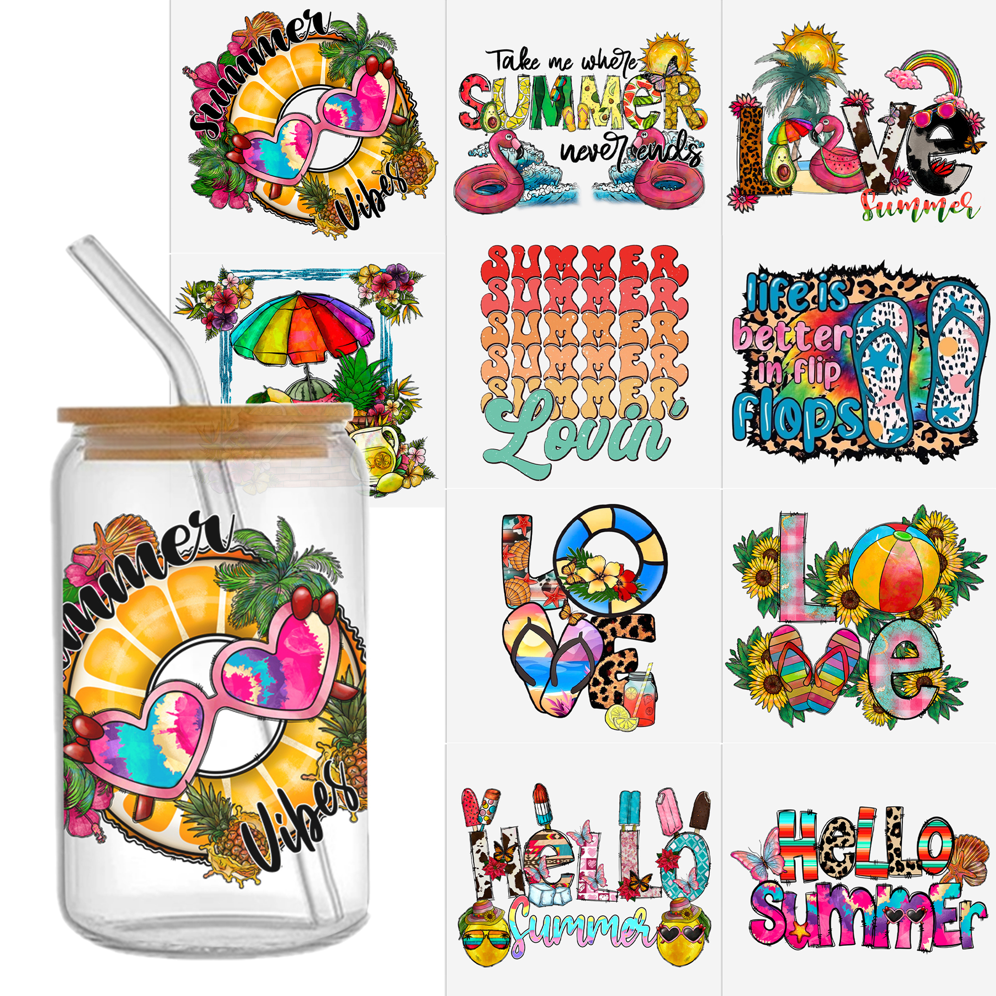Summer Flip Flops Beach UV DTF Sticker For 16oz Cups Wrap Transfer Sticker Custom Labels DIY Logo Waterproof