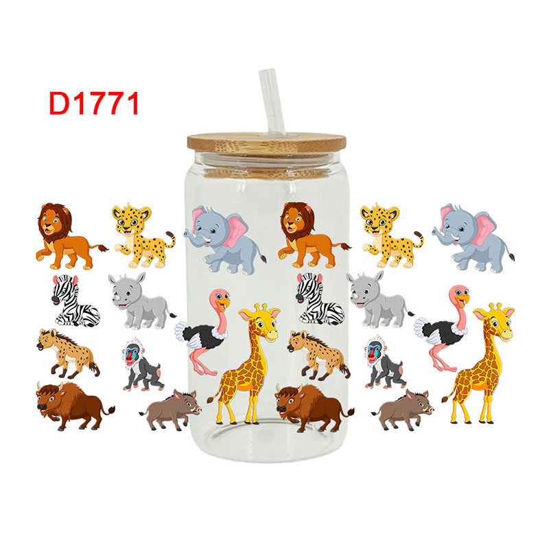 UV DTF Transfer Sticker Animal Theme For The 16oz Libbey Glasses Wraps Cup Can DIY Waterproof Easy To Use Custom Decals
