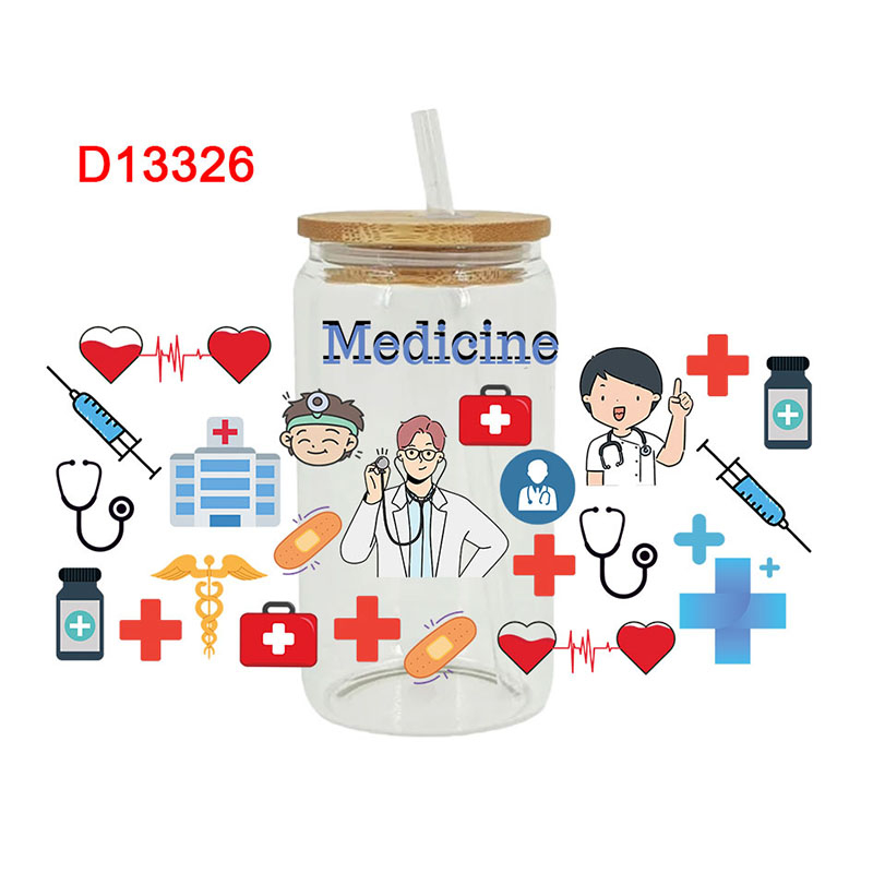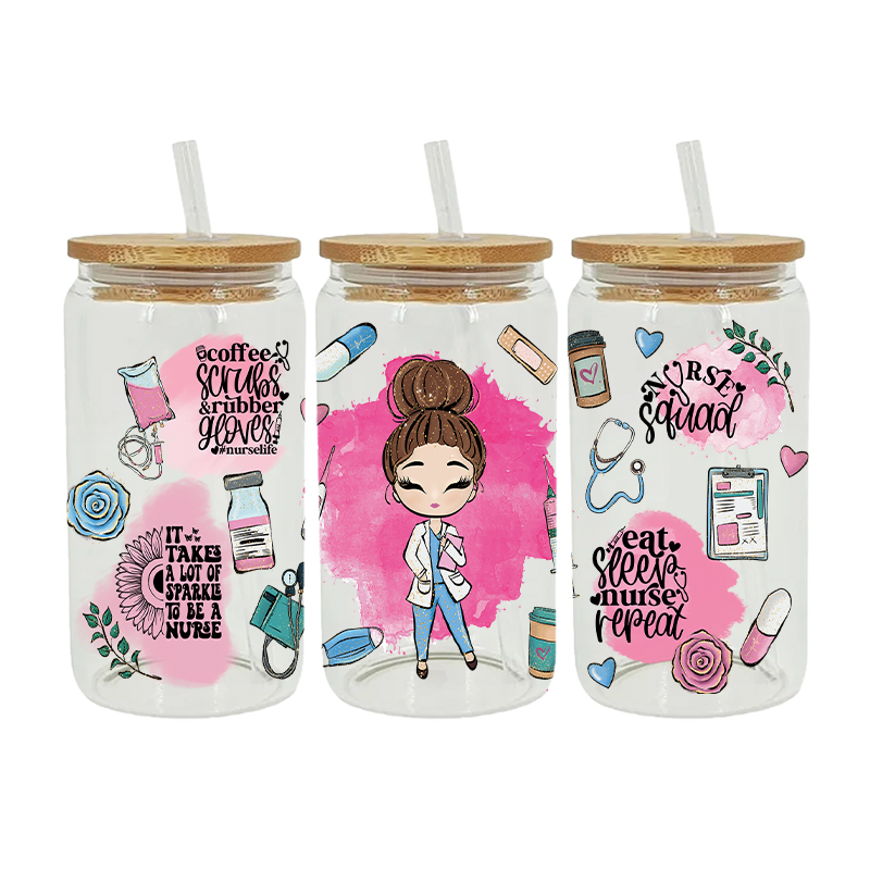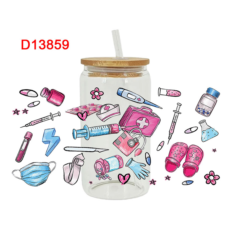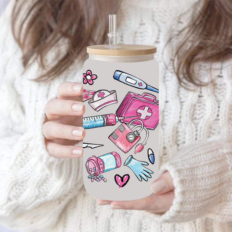UV DTF Transfer Sticker NURSE Theme For The 16oz Libbey Glasses Wraps Cup Can DIY Waterproof