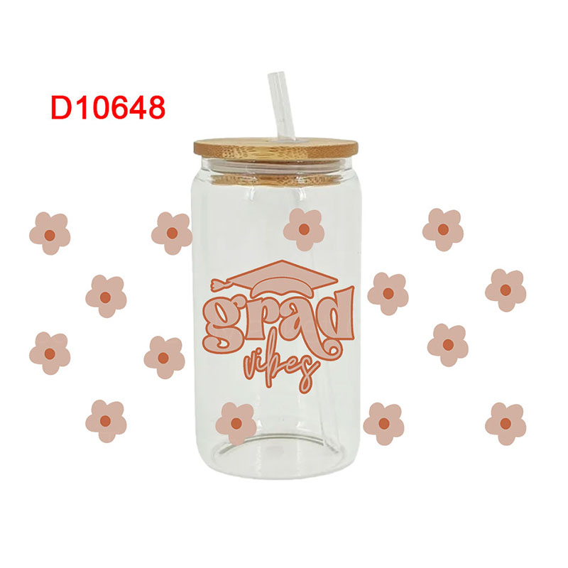This listing includes one (1) UV DTF adhesive cup wrap designed for a 16oz Glass Cup. (Cup not included.)Premium printed UV DTF wrapPermanent and waterproofCup Wrap Transfer Size: 240x110mm or 240x105mmThe print follows the design draft shown in the pictures. Some styles may feature retro, scratch, crayon graffiti, or other effects, which are intentional and not print machine issues. Please carefully review the style image before purchasing.Some patterns are intricate with many lines, which may result in some glue remaining on the edges after applying the pattern. This is normal. If this concerns you, please reconsider before placing an order.The price is for a single piece (as shown in the picture). Refunds will not be accepted for customer errors regarding quantity or price. Please carefully review before purchasing.How to Apply:Use a vinyl felt squeegee or your hands to press over the design.Peel the design off the transfer backing.Position the design on your cup, starting from the center and working outward.Press the design onto the cup/surface with your fingers or a vinyl felt squeegee to help it adhere.Remove the clear film, and voilà!Please note, the adhesive is extremely strong. Once the decal is placed, it cannot be removed. Wait at least 24 hours after application before using or washing the cup.🖤 Each cup/tumbler may vary in size, so you may need to cut or adjust the wrap/decal accordingly. Our wraps are made to a standard size. We are not responsible for wraps/decals that are incorrectly applied or damaged during application.