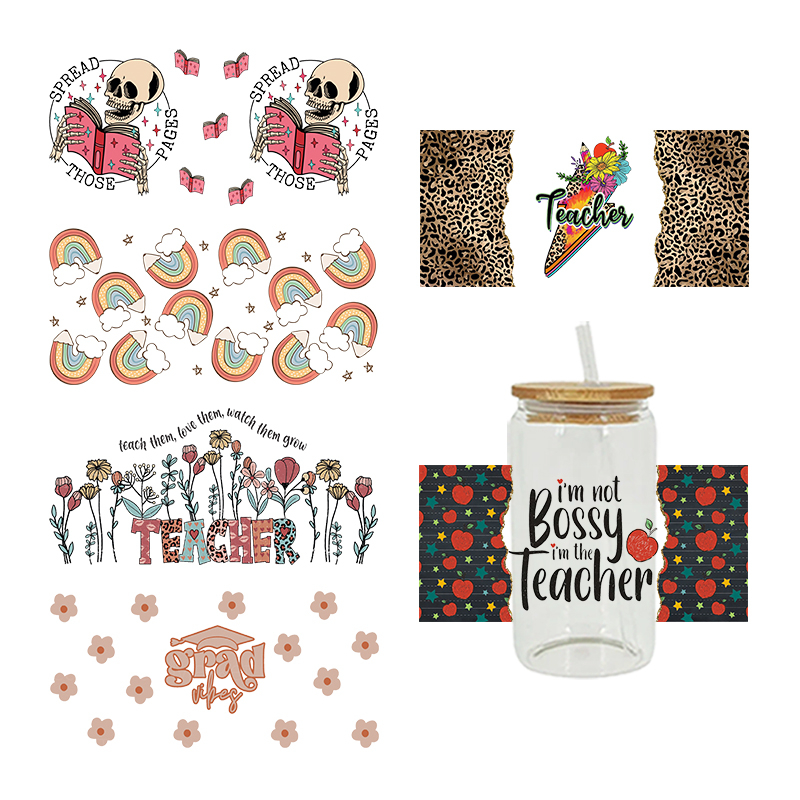 UV DTF Transfer Sticker Teacher Theme For The 16oz Libbey Glasses Wraps Cup Can DIY Waterproof